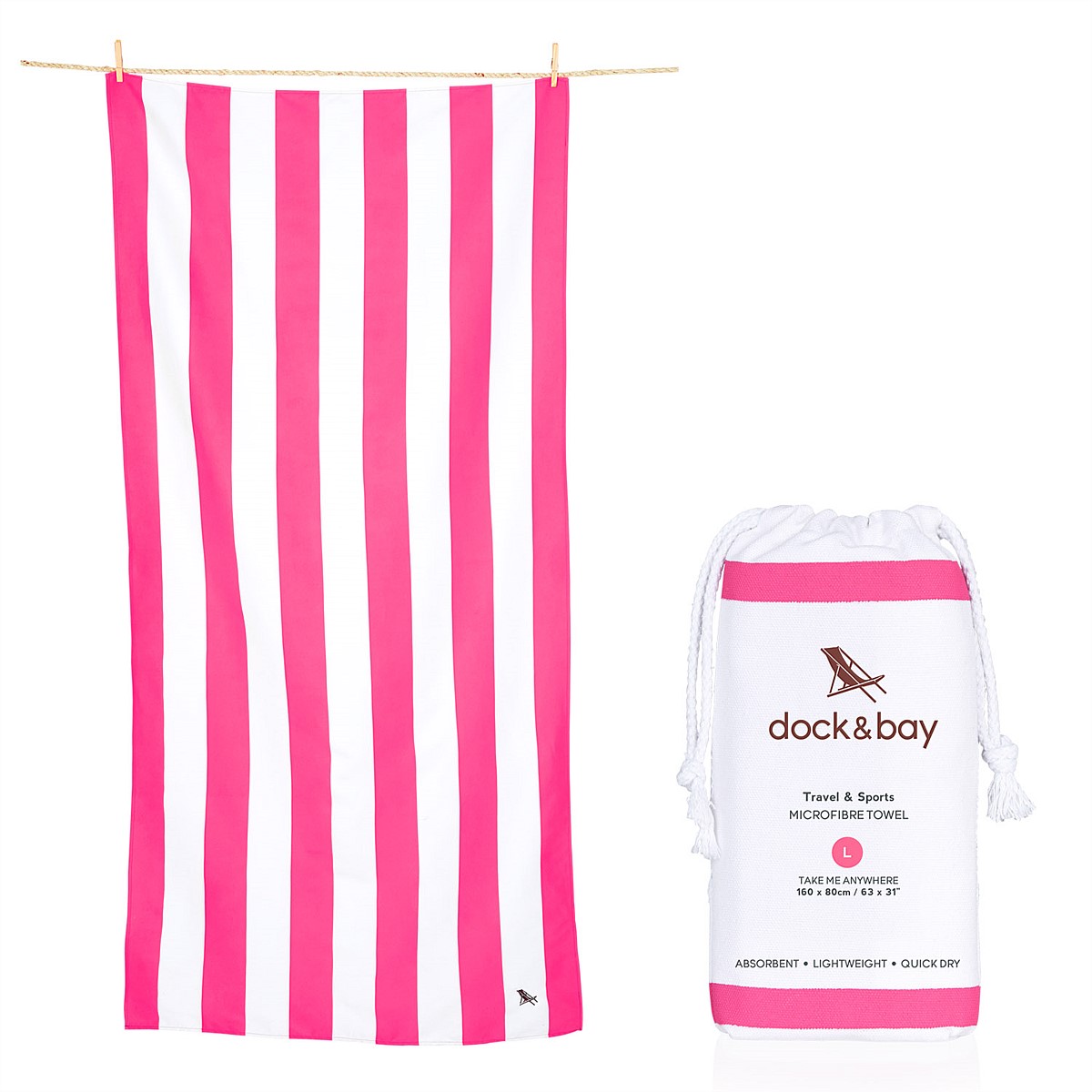 Dock & Bay's beach towels give you everything you want in a towel. Made from microfibre, they are lightweight and absorbent, yet dry extra quick. The built-in elastic hook makes them easy to hang up and the stylish cotton bag provides easy storage. On top of all the features, the eye catching colours mean the towels and bags look great wherever you take them.