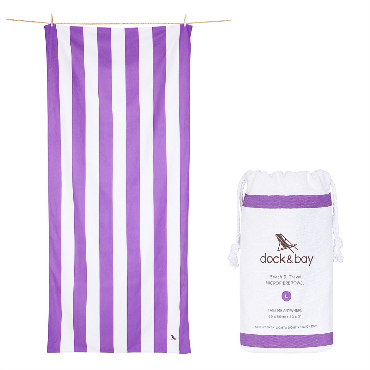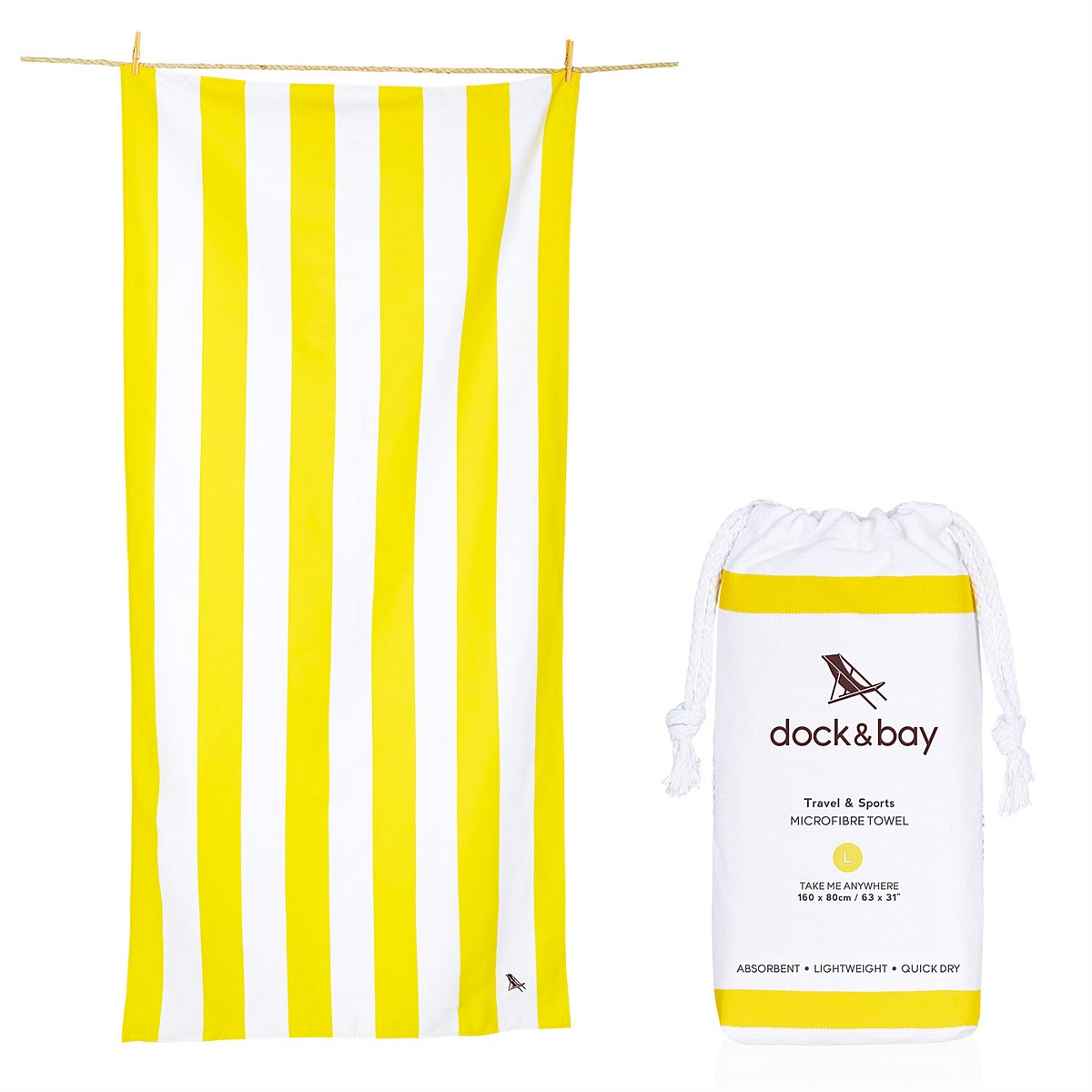 Towel dimensions: 160 x 80cm. Bag dimensions: 24 x 14cm Weight: 350 grams.