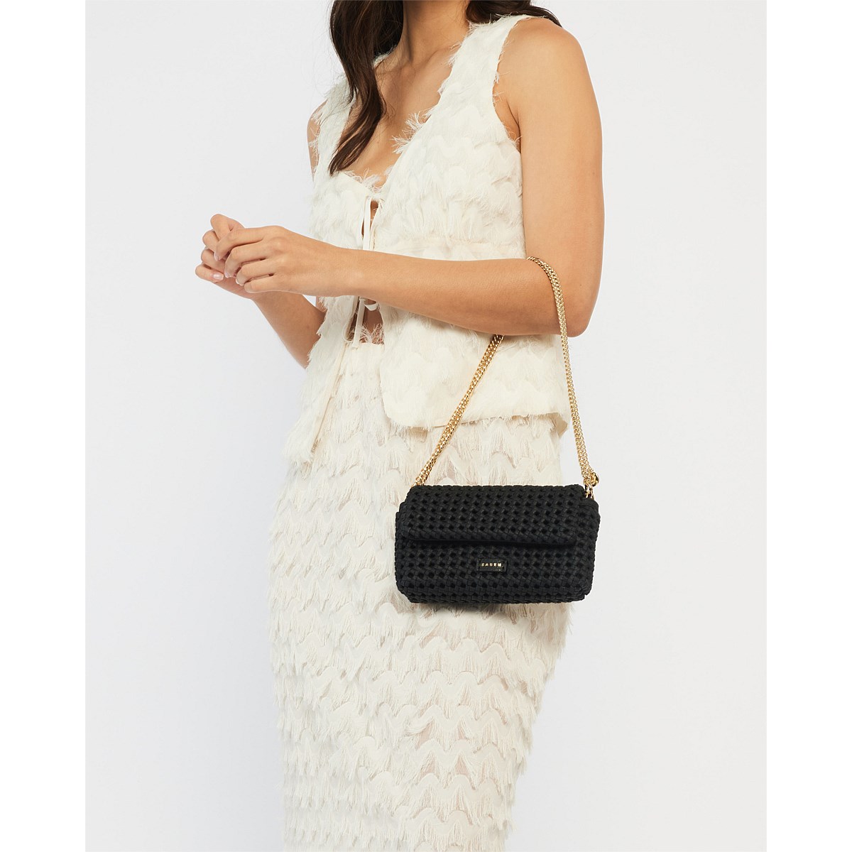 Introducing the Milla Shoulder Bag—a braided statement piece crafted from this season's must-have texture: fine hand-braided leather. With its chic chain shoulder strap and secure magnetic flap, Milla is the perfect companion for any occasion, from weddings to date nights. Make a statement wherever you go!