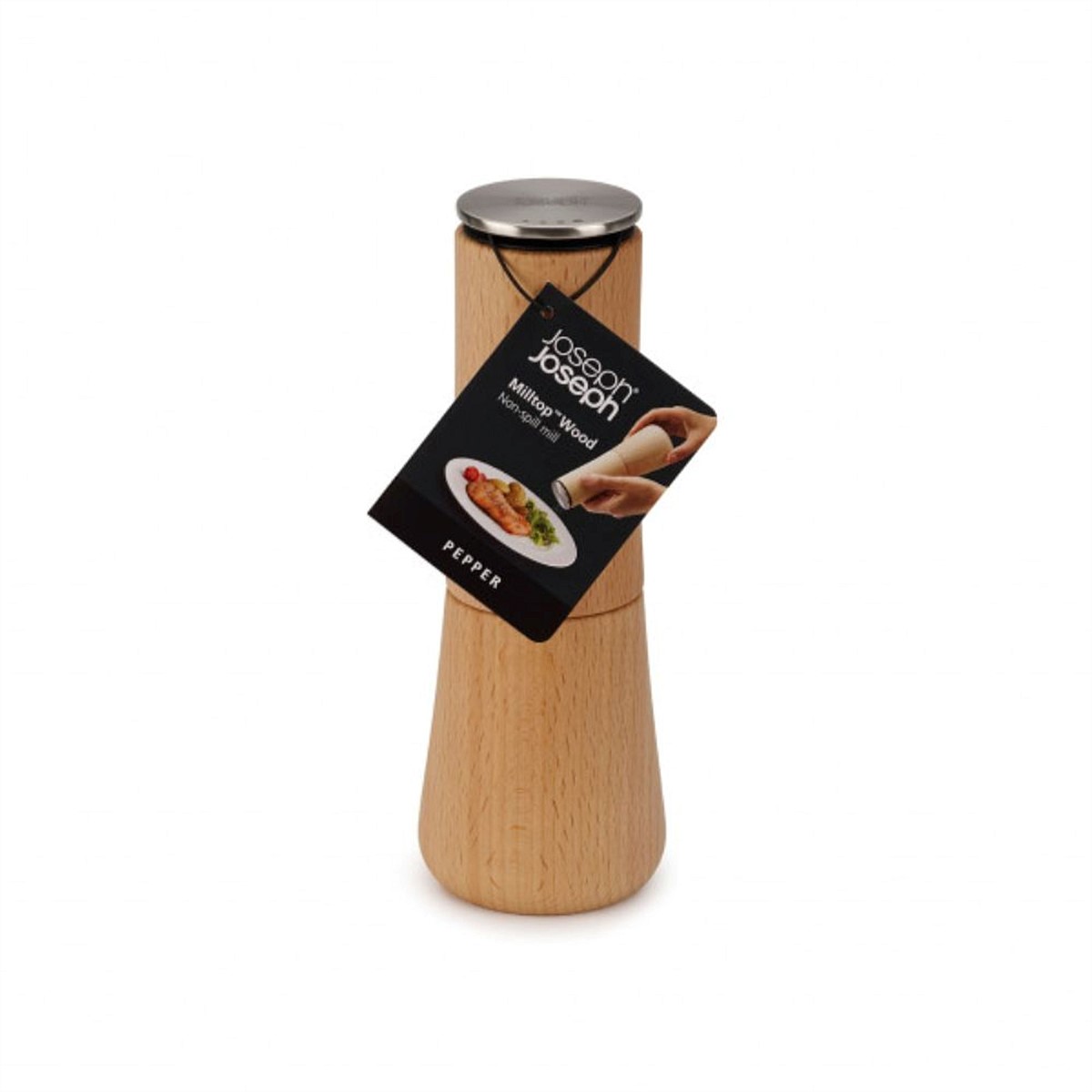 Conventional salt & pepper mills often create mess by leaving excess grounds on surfaces when placed down. The simple, elegant design of Milltop Wood avoids this problem as the grinding mechanism is at the top of the mill, which means any excess grounds fall back inside the unit after use. To use, simply hold the mill at an angle and twist the base to grind and to adjust the grinding size, rotate the stainless-steel top. Made from beautiful, natural beech wood, the design also features a tough, ceramic grinding mechanism and is very easy to fill via a twist-off base.