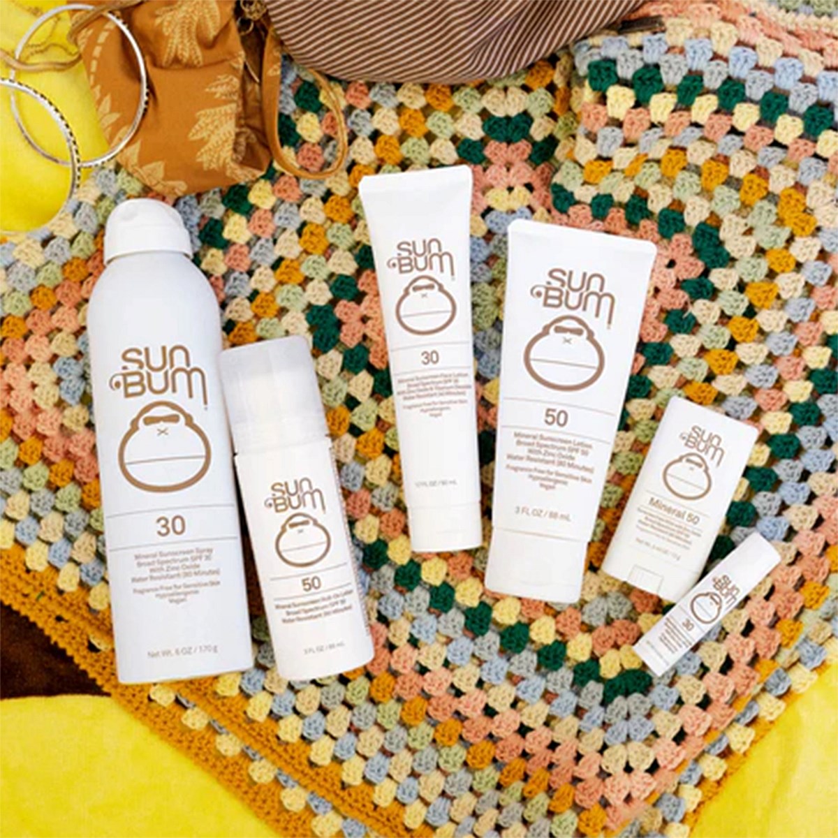 Sun Bum zinc-based, Fragrance Free mineral sunscreen lotion, with Broad Spectrum SPF 50 protection which helps protect skin from UVA/UVB rays.