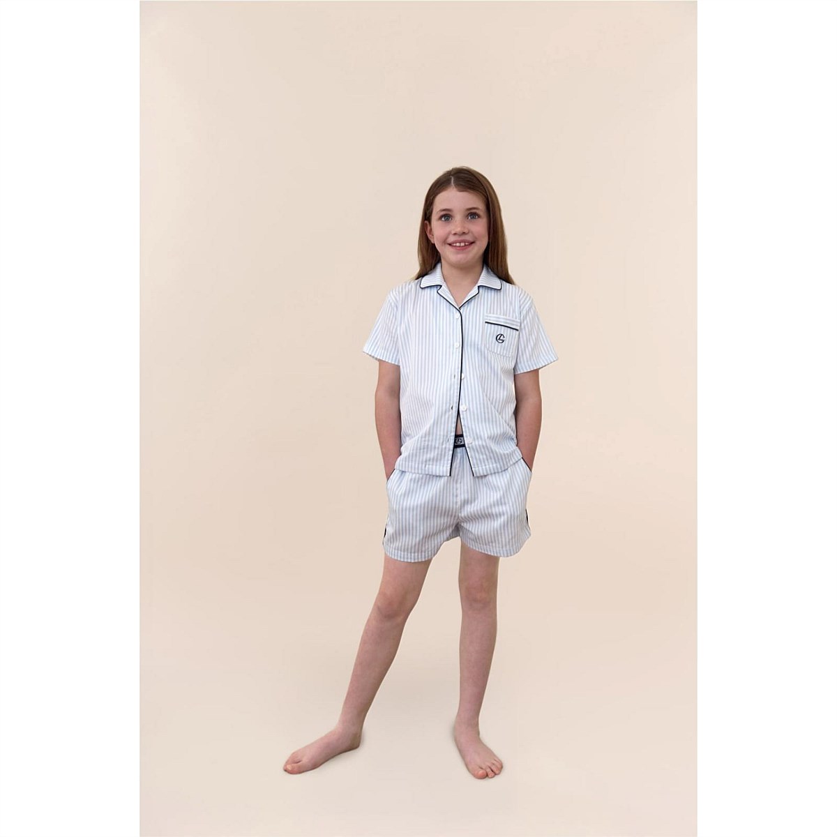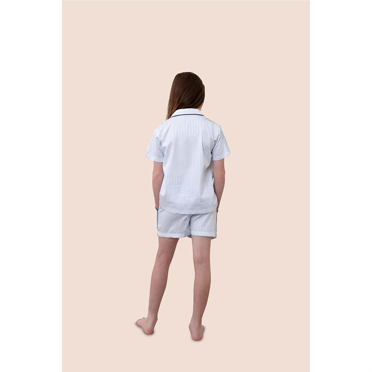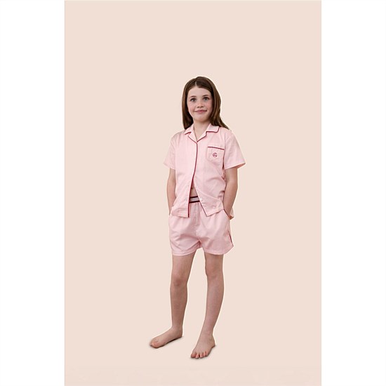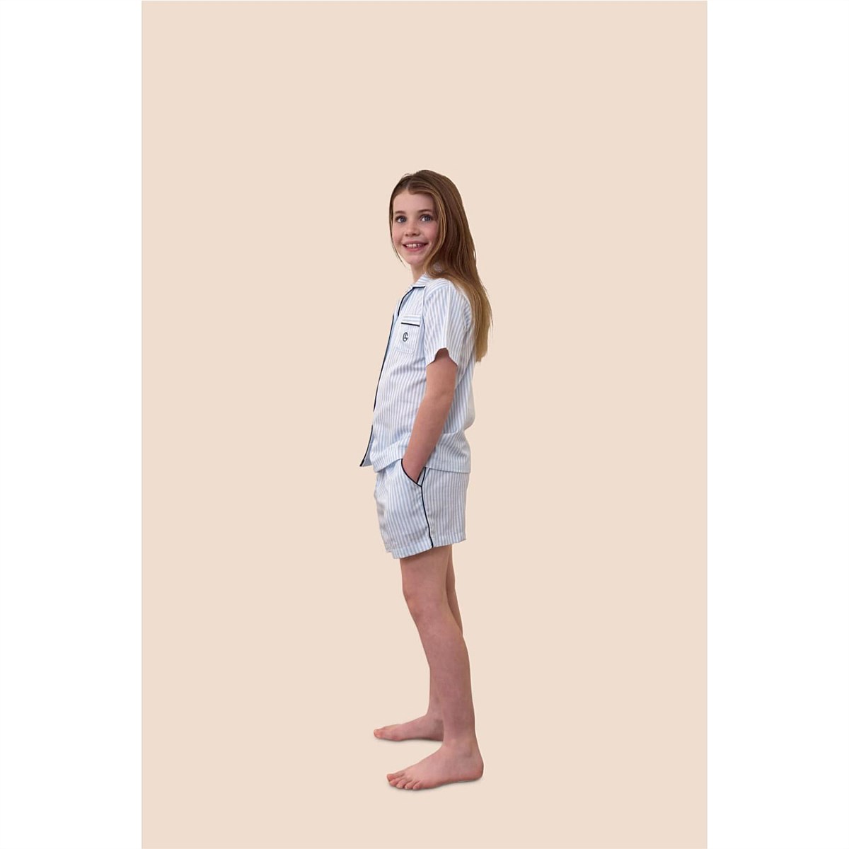 Top Style: Short sleeve, button-through, classic pyjama front, contrast piping