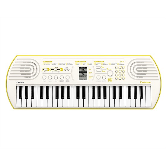 The SA-80 (Yellow shell base) features 44 child-friendly mini-size keys and includes 100 tones, 50 rhythms, and 10 integrated songs.