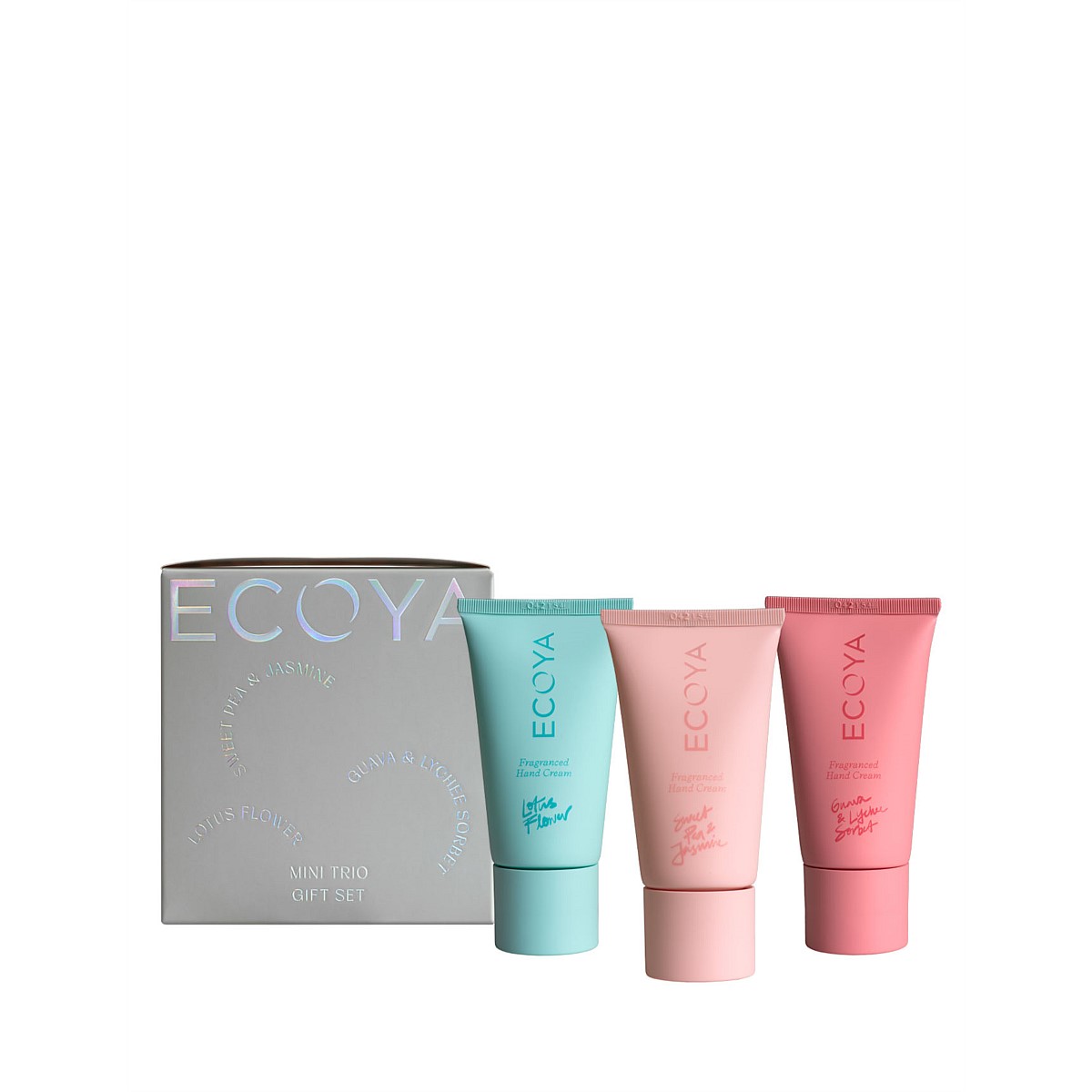 The Mini Trio Gift Set contains three miniature hand creams in three of our most loved ECOYA fragrances, Guava & Lychee Sorbet, Lotus Flower and Sweet Pea & Jasmine.