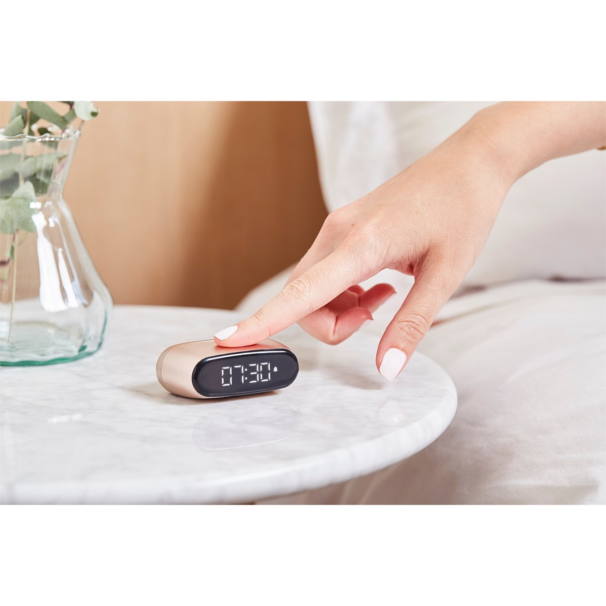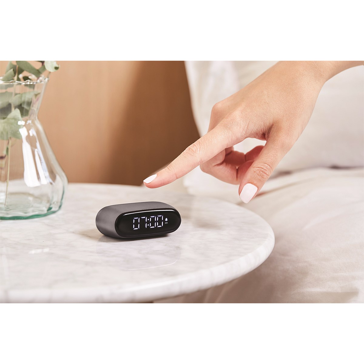 Minut is a stylish and tiny alarm clock that fits in the palm of your hand. Its ultra compact size makes it easy to fit right on a nightstand and pack for travel. Featuring easy-to-use touch controls to light up the screen and trigger the snooze function, Minut gives you some extra shut-eye when needed. Equipped with pure VA LCD display, Minut allows you to check the time clearly at any position in the room. Crafted in a sleek aluminum finish, this cute little alarm clock is the perfect accessory to upgrade your bedroom decor. Offering up to 6 months of battery life, Minut is rechargeable via USB-c using the supplied cable. For optimal charging, use a 5V USB power adapter.