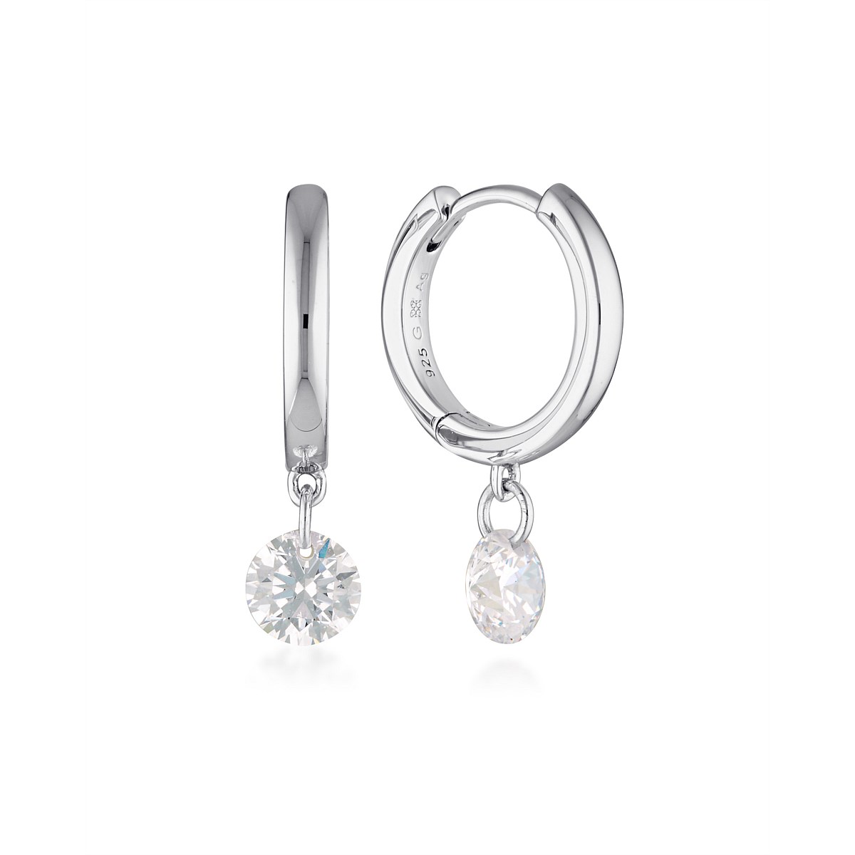 The focal point of the design is a mesmerising 6.25mm floating white cubic zirconia suspended delicately within the hoop. This brilliant cubic zirconia captures and reflects light with every movement, creating a dazzling display that adds a touch of glamour to any occasion.