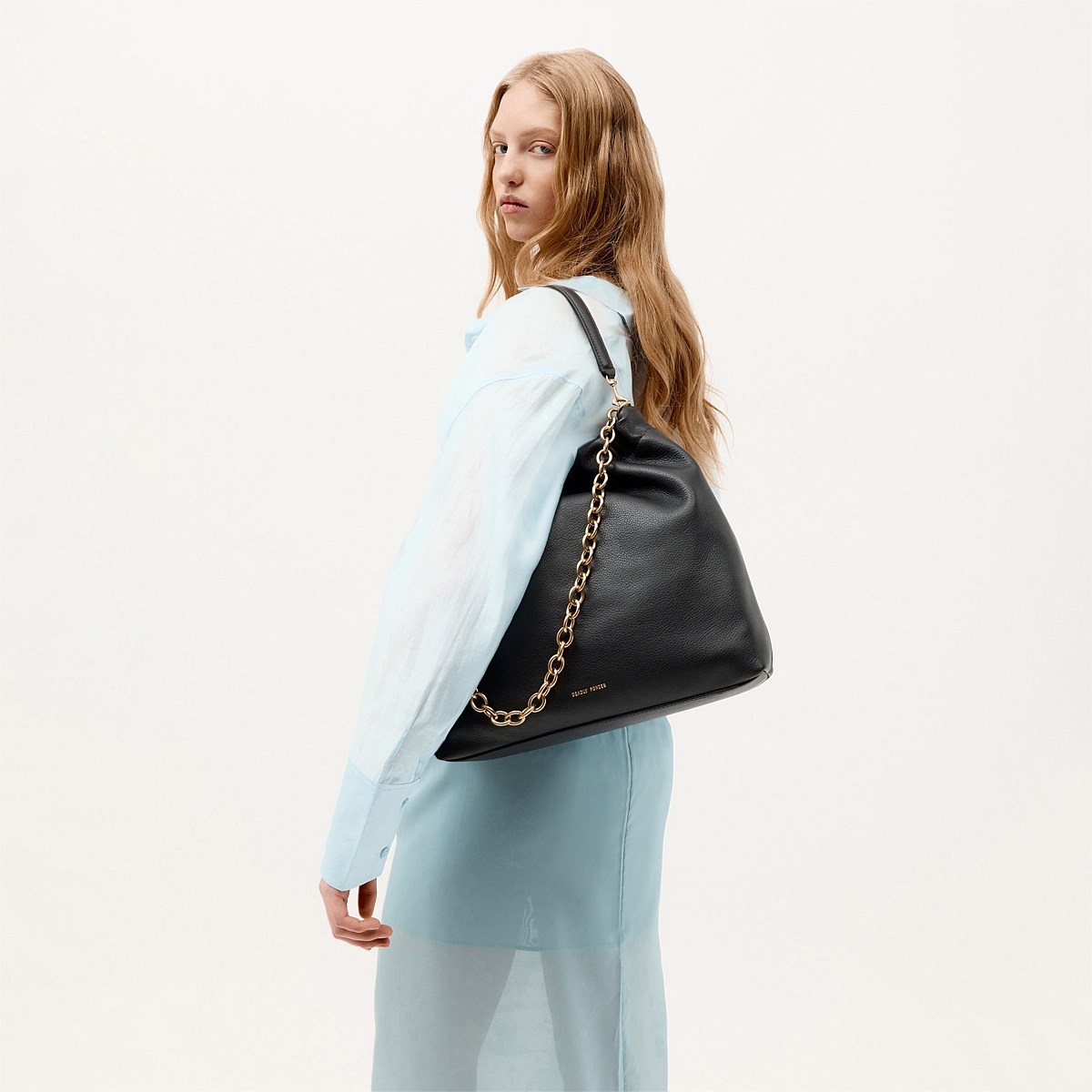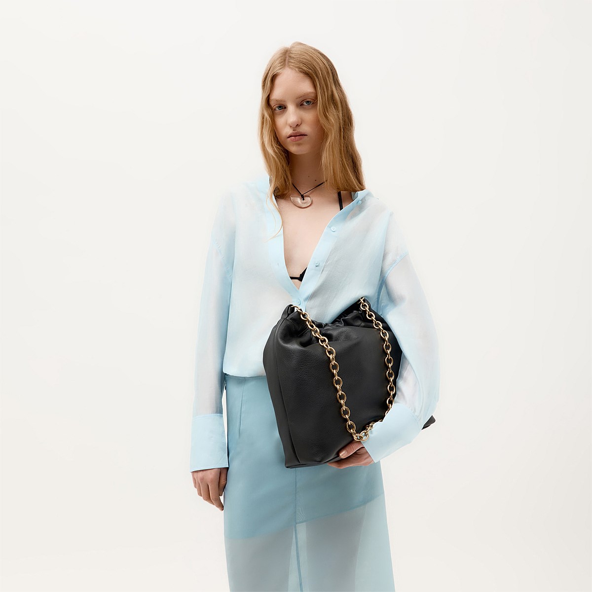 Mr Cinch is crafted from buttery Black Calf Nappa. He features a detachable chain detail that doubles as a handle, a removable chain cover, and a detachable top handle. Inside, the spacious interior includes two slip pockets and a zip pocket for seamless organisation.