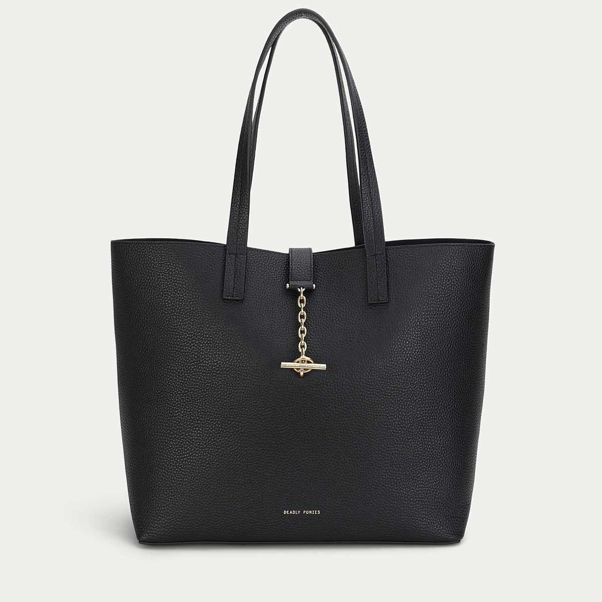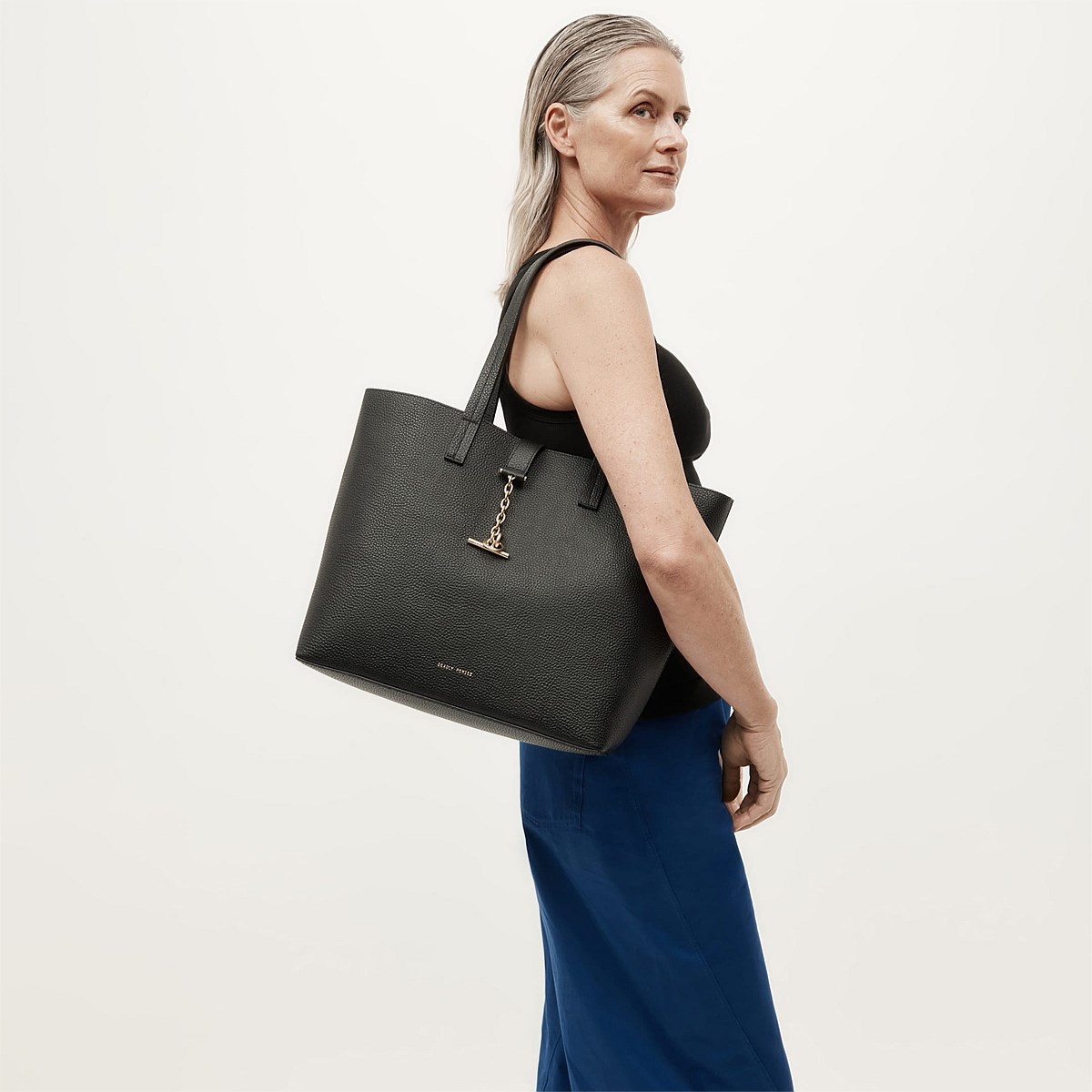 Gently structured in Heavy Grained Calf Leather with a resin coated interior finish, Mr Porter Tote in Black features dual handles and a brass chain with branded T-bar closure at the front.