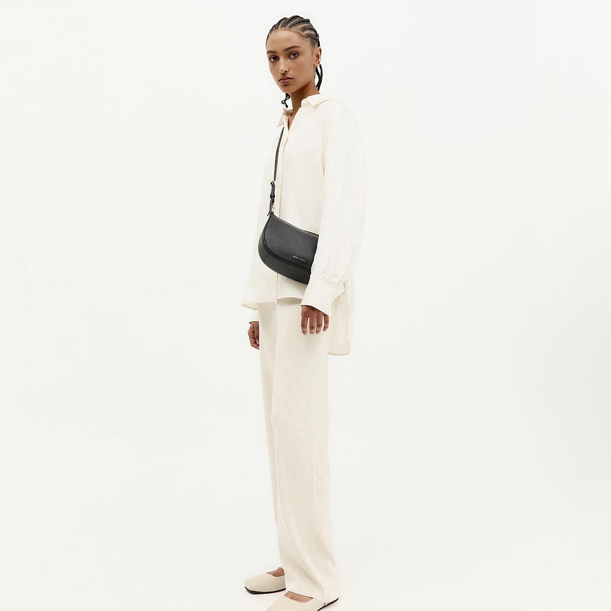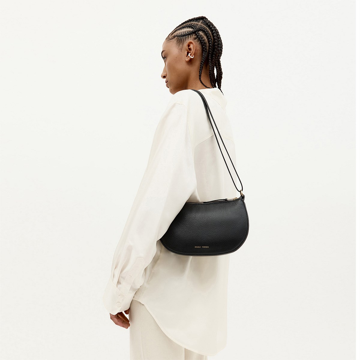 Petite in stature, Mr Sling Micro in Black is crafted from buttery Calf Nappa. A detachable top handle and adjustable strap offer versatile styling, while internal pockets and a brass zip closure keep essentials secure.