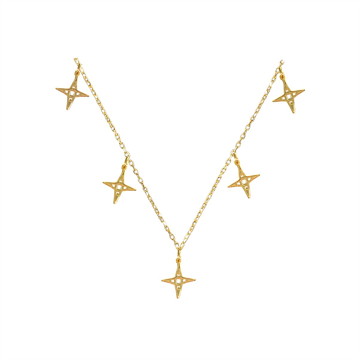 The Stunning Multistar necklace features five 9mm x 9mm stars.