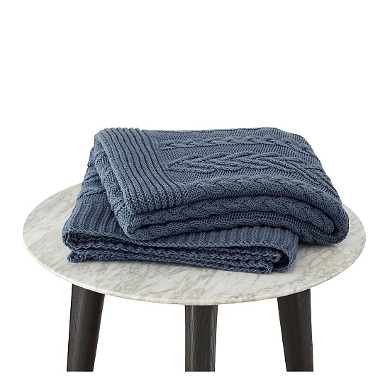 Wrap yourself in the cosy warmth of the Oregon Throw. Made from 100% cotton, this beautifully crafted cable knit throw comes in a rich indigo blue, adding a touch of sophistication to any room. Its soft texture and durable design make it perfect for layering on your bed or draping over your sofa for extra comfort and style.