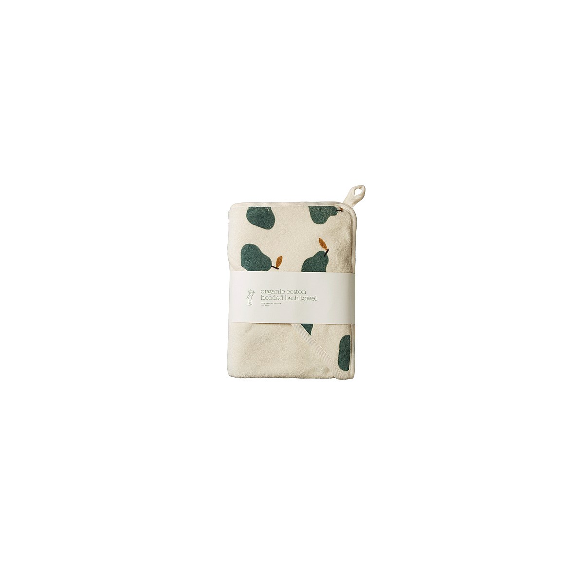 Wrap baby up nice and snug with this soft and luxuriously fluffy organic cotton beach or bath towel. The cosy hood keeps baby warm while you dry, and rib binding with a loop at the top corner allows for easy hanging.