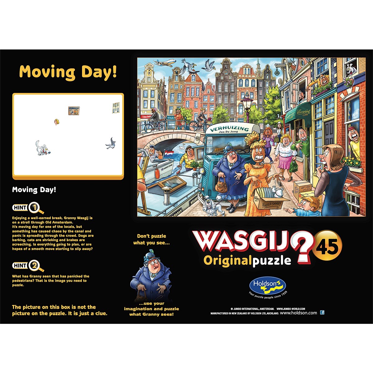 Dive into the lively and unpredictable world of moving day with the Wasgij Original 45: Moving Day 1000-piece puzzle. This engaging puzzle turns an everyday scenario into an extraordinary adventure, filled with humor, hidden surprises, and a touch of the unexpected. Tasked with imagining the scene from an alternative perspective, puzzlers will revel in the challenge of piecing together the reactions and outcomes of this bustling day.