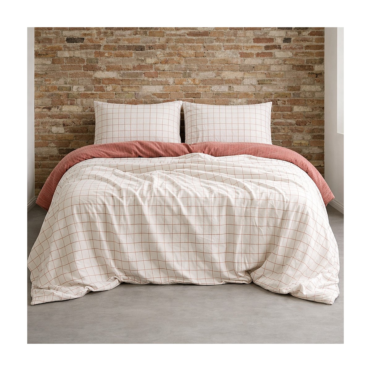 Orlando is a two-tone reversible duvet set featuring warm earthy colours. The versatile design has a classic grid pattern on one side and a classic striped pattern on the reverse to easily complement any decore. 100% Cotton.