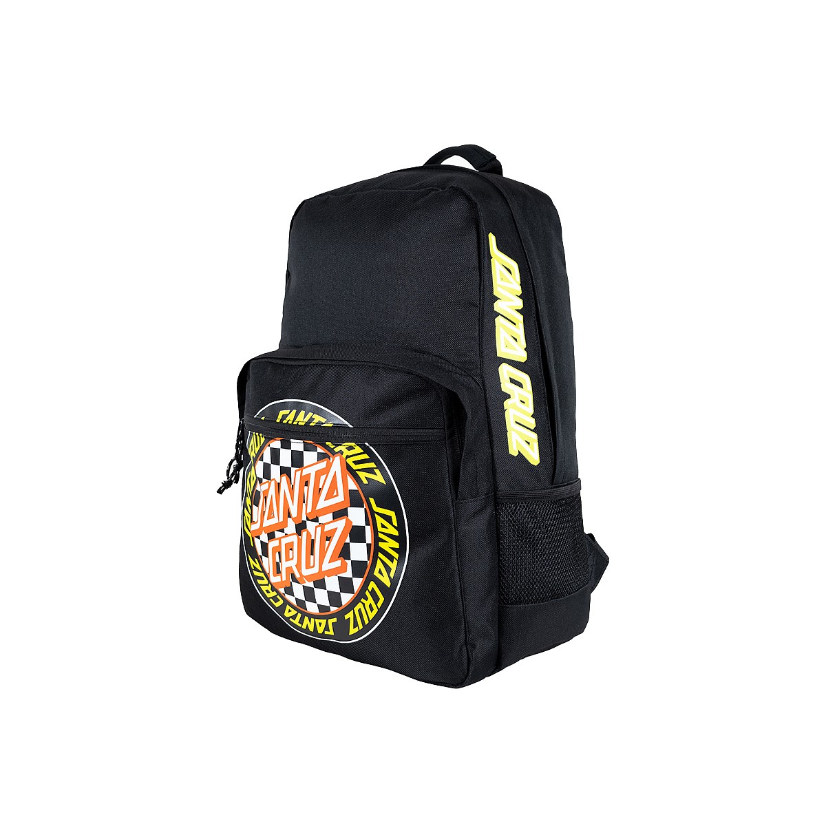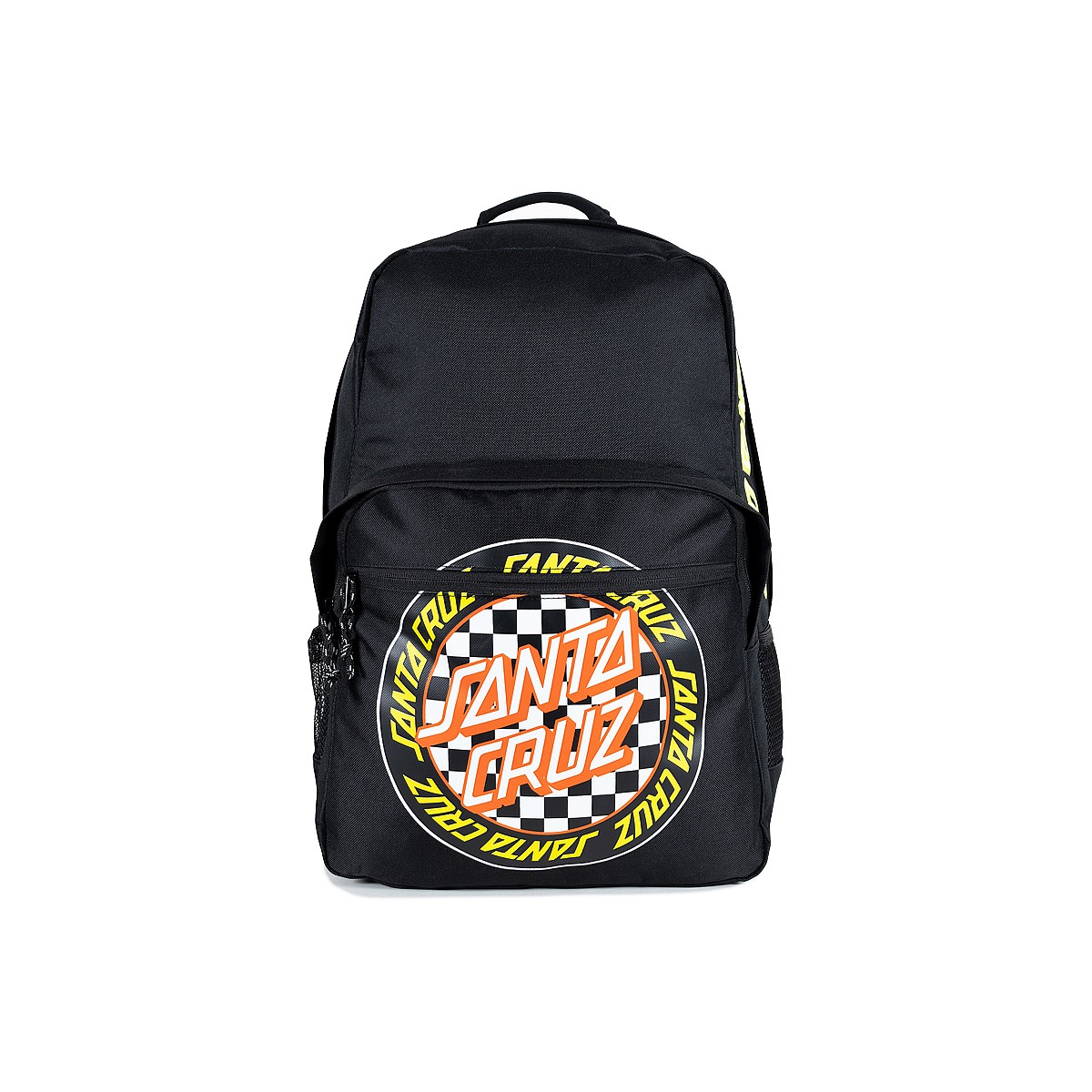 Boys Santa Cruz backpack featuring a screen print of the Outer Ringed Check Dot artwork.