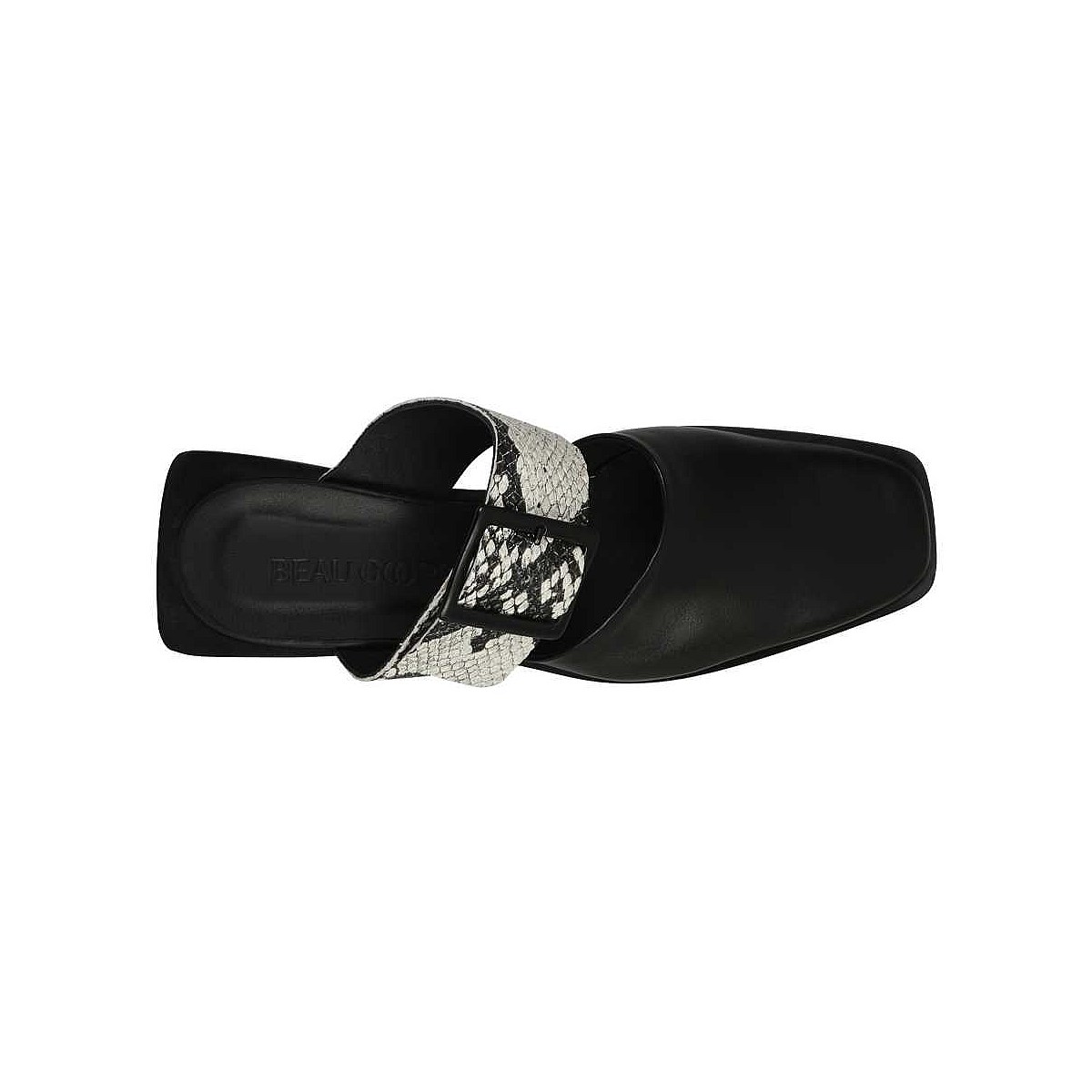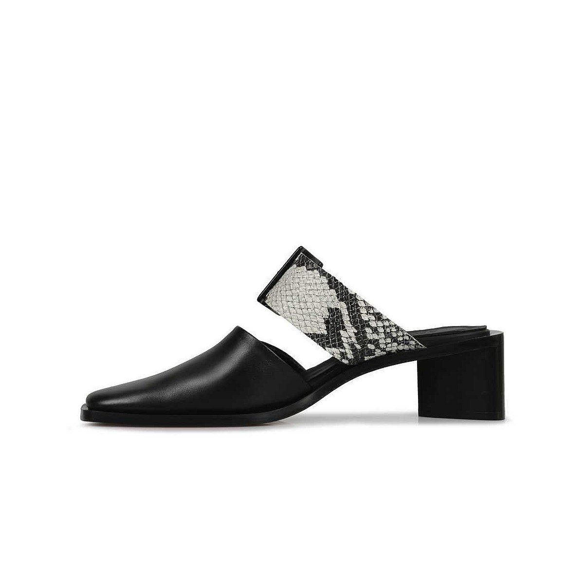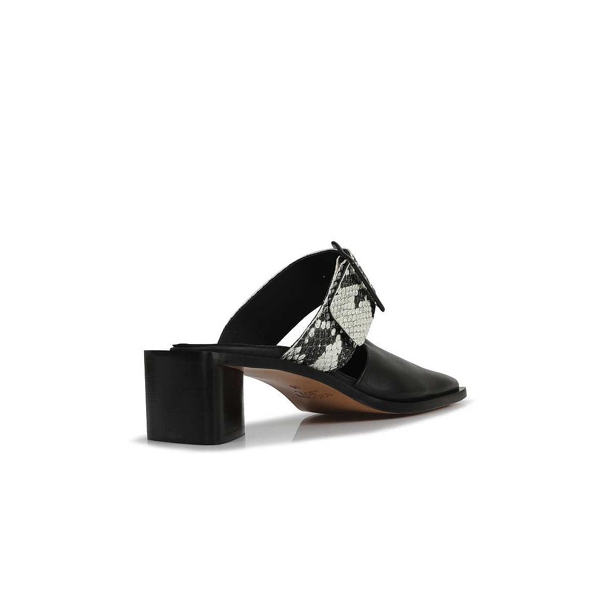 Crafted in Italy from smooth grain leather, the Pamela mules by Beau Coops feature a closed toe upper, offset by a contrast snake-print strap over the foot. Make an impact this spring with a striking geometric, stacked-leather heel and tonal buckle detailing.