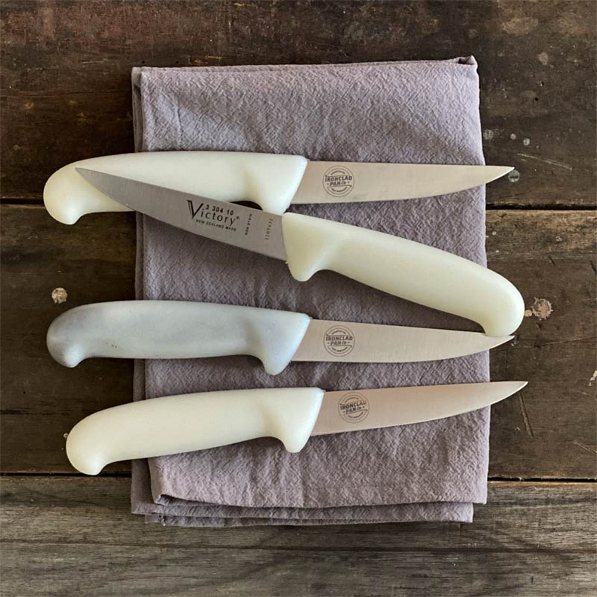 The limited edition 10cm Paring Knife is hand-made to order right here in Aotearoa, New Zealand, in partnership with Victory Knives and Shear Edge™. The undyed, natural wool fibres result in a unique cream colour and variations in tone for every handle.