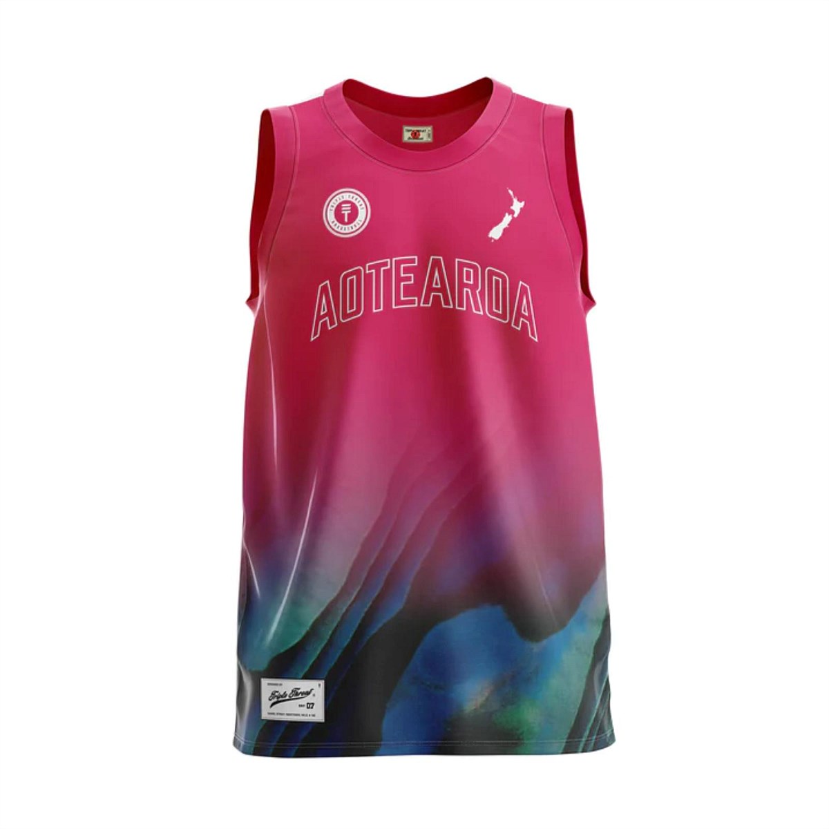 Bring bold energy and cultural pride to the court with the Paua Pink Basketball Singlet. This standout piece combines vibrant pink tones with a unique Maori-inspired paua shell pattern, repping identity while delivering serious basketball performance.