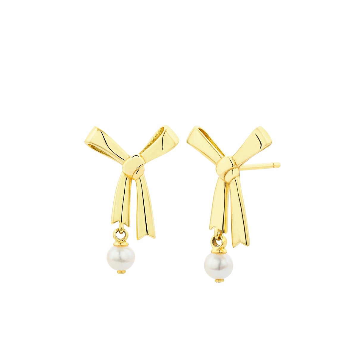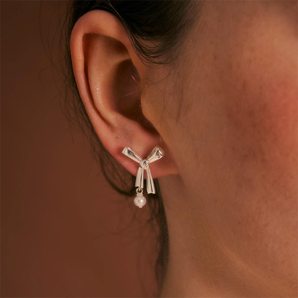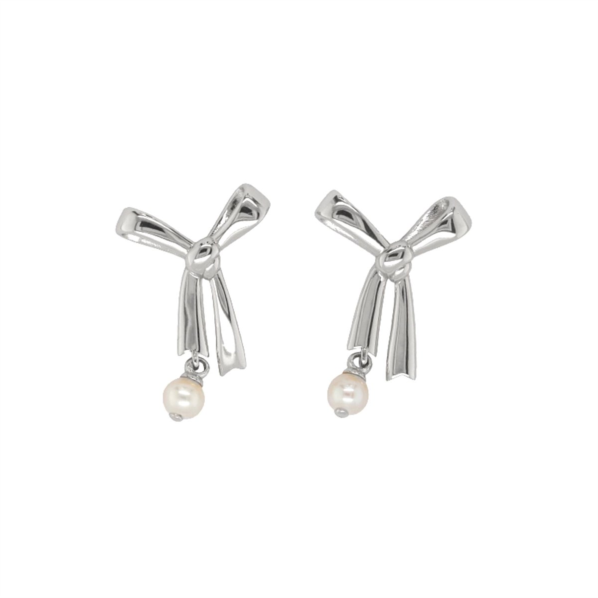 Petitite bow Studs cradle luminous freshwater pearls in a design that evokes Rococo elegance and light.