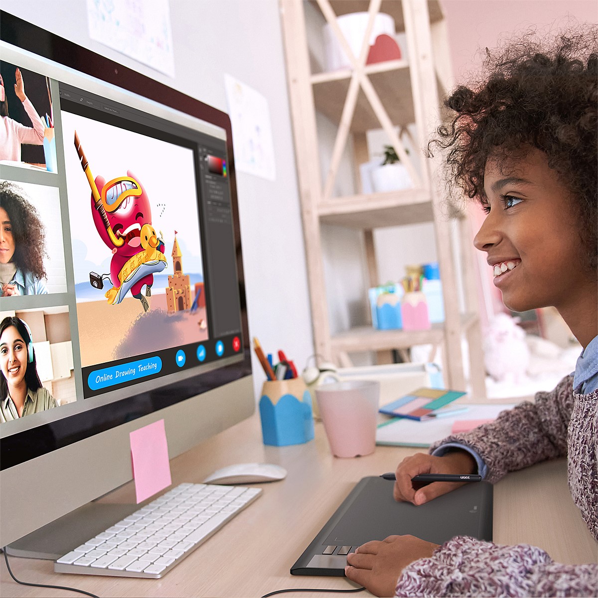 The UGEE M708 is compatible with Windows 7/8/10, Mac OS X 10.10 (or later), Chrome OS 88 (or later), and Linux, making it easy for you to achieve more. Whether you want to draw or learn, it's easy with the UGEE M708. Just connect the USB cable to your computer, download, install the driver, and go. It also features eight shortcut keys that can be programmed to various software applications, allowing instant access to specific task functions.
