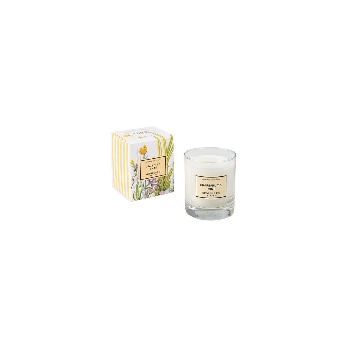 Each GEORGE & EDI candle is poured by hand with love in New Zealand. It is crafted from natural soy wax with cotton braided wicks and phthalate-free fragrances. The candles are packaged in our signature floral and stripe boxes.