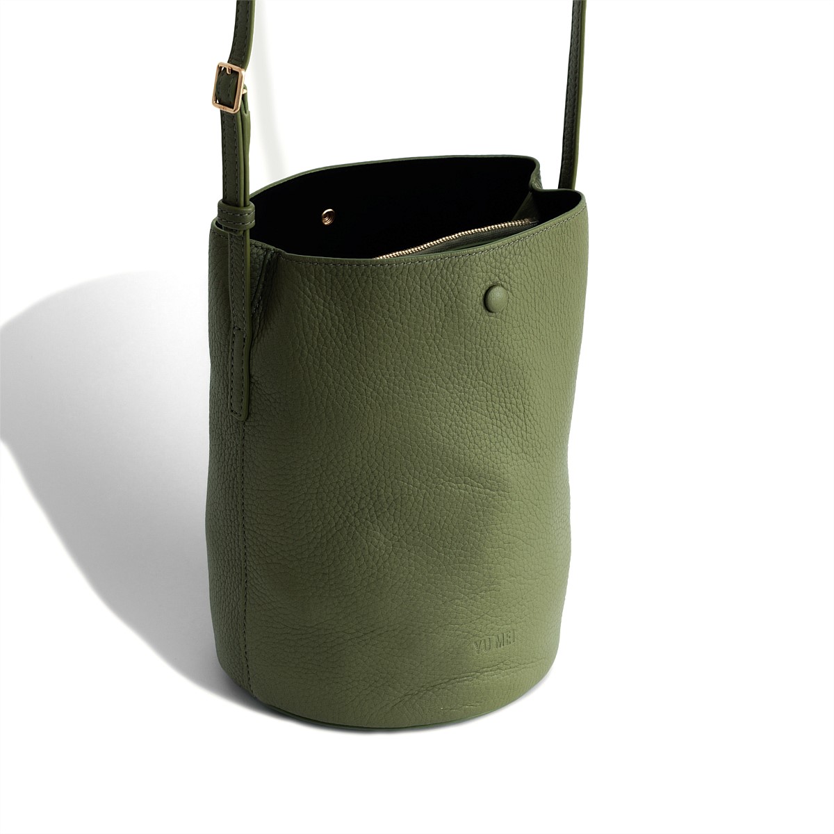 Named after an avid bookworm, the Phoebe Bucket is intelligent, refined and fun. Designed to fit two Penguin novels, a sleek covered button closure, detachable zipped inner section, and circular base finish this perfectly balanced style. An everyday favourite. Strap length is adjustable from 97cm - 118cm.