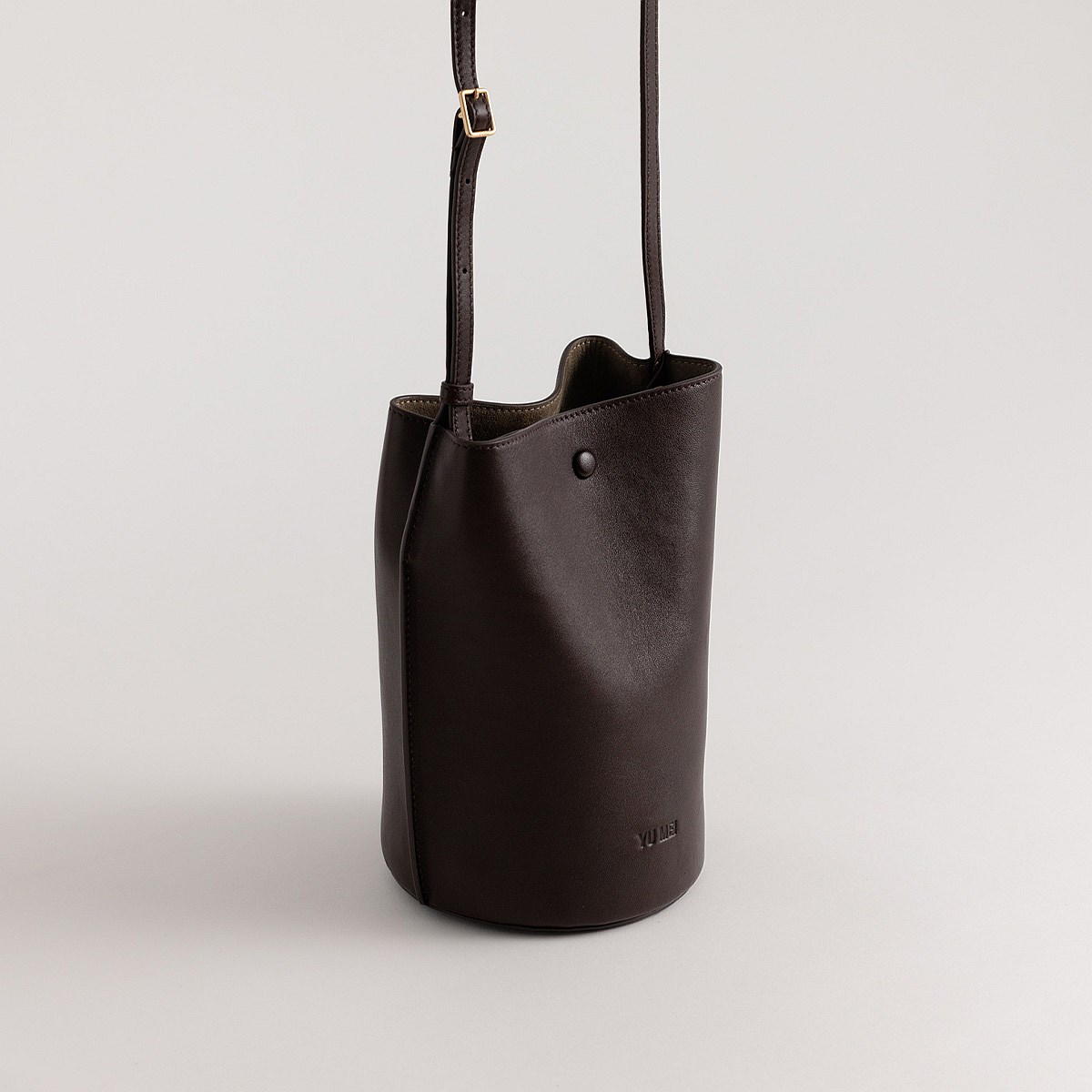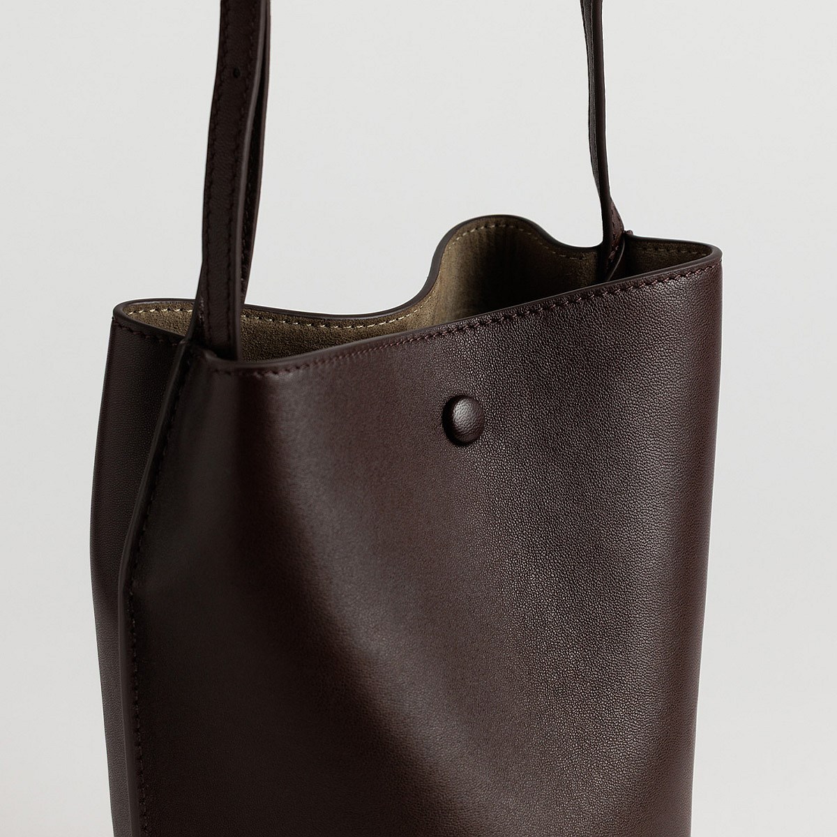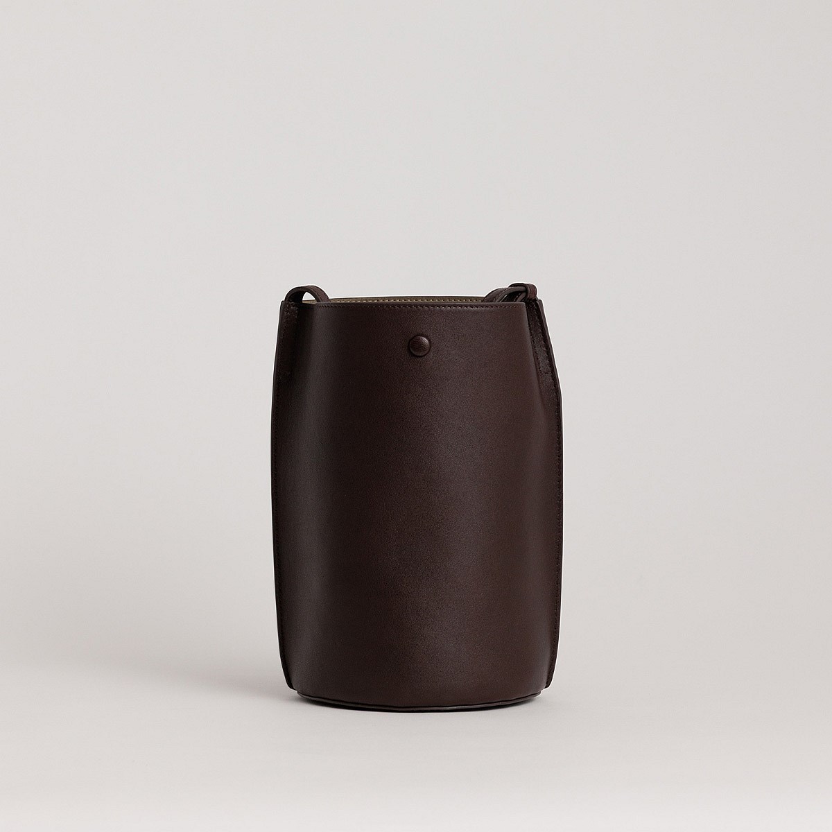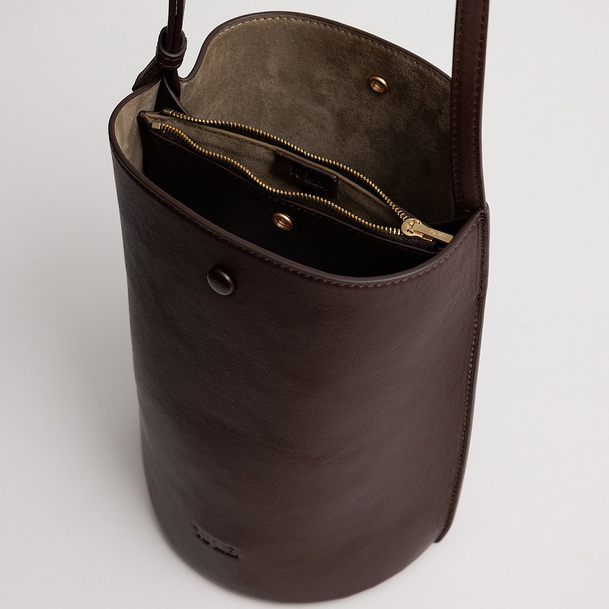Designed to fit two novels; a sleek covered button closure, detachable zipped inner section, and circular base finish this perfectly balanced style.