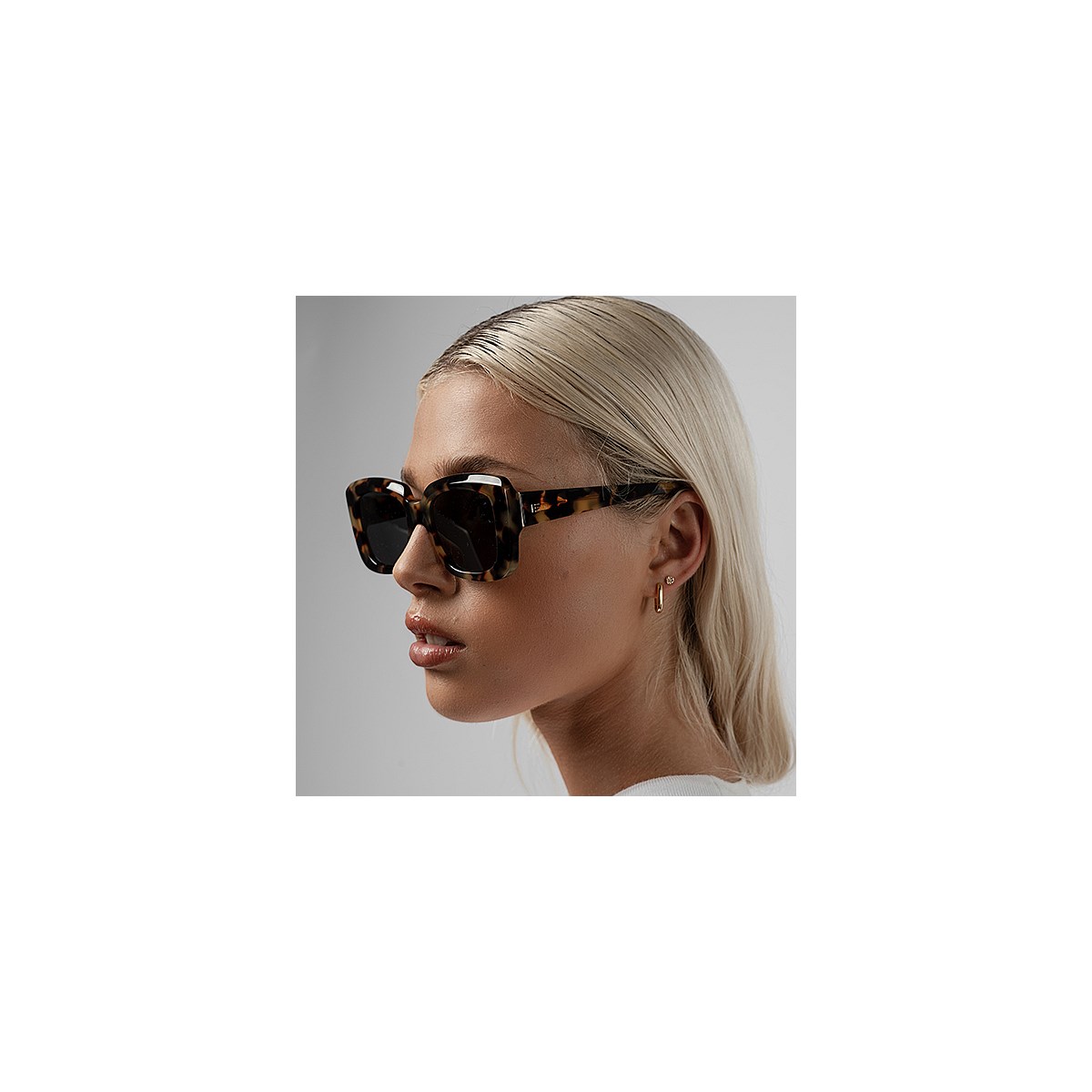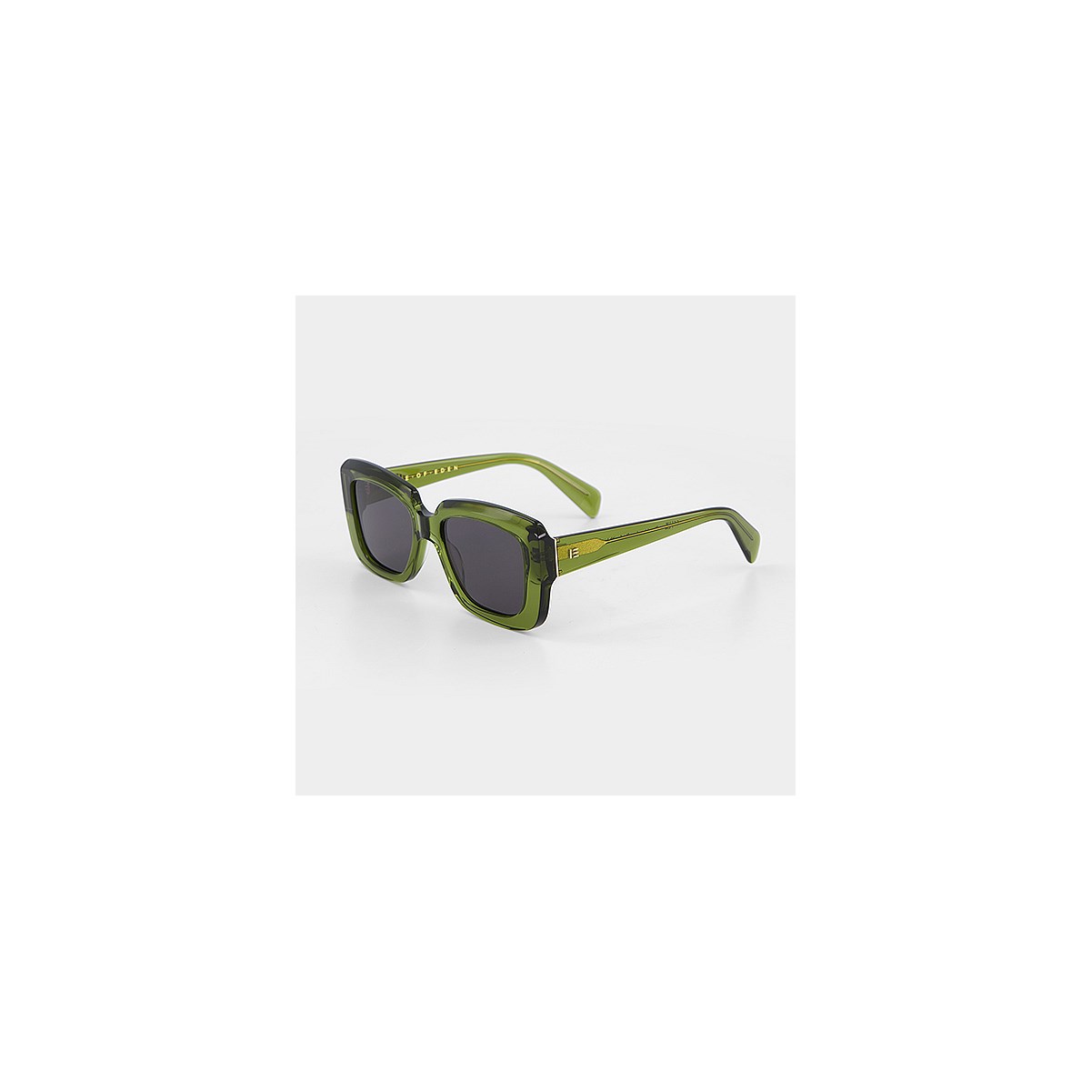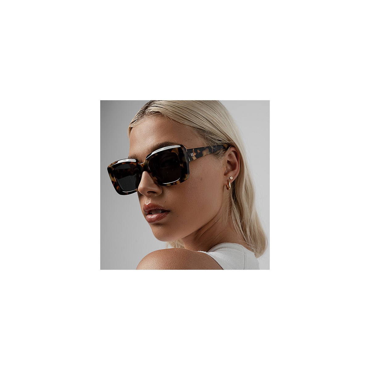 The Pia is a large and bold rectangular frame that brings a Hollywood vibe to any occasion. A timeless silhouette paired with a sculpted brow, flat lenses, and gold Isle of Eden temple caps creates a confident, sophisticated look.