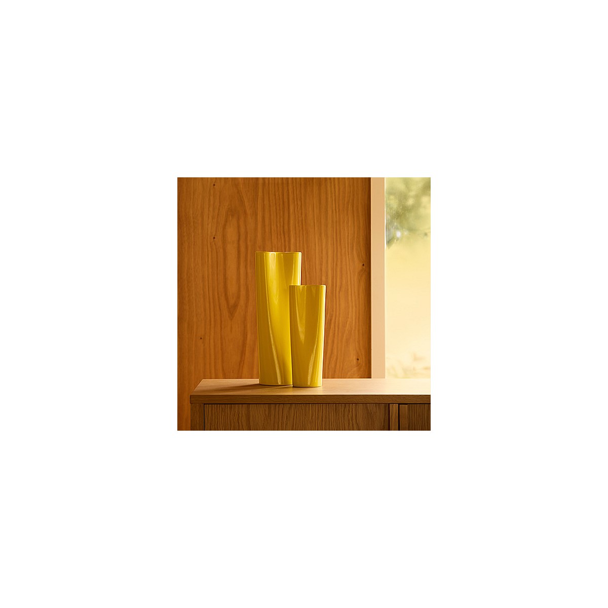 The Pinch vase is a collaboration between Citt? and internationally renowned product designer Jamie McLellan. Its design features a cylindrical base that tapers into a ?pinched? top, forming a distinctive ?figure eight? silhouette with two separate chambers. Thoughtfully balanced proportions ensure the base circumference is equal to the pinched outline. The unique shape allows floral arrangements to fan out in a striking widescreen effect or form an asymmetrical display when one side is filled.
