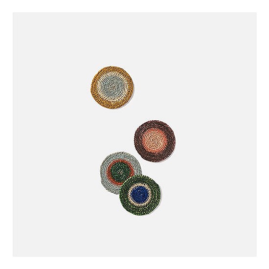 The Pinto Coasters explore the interaction of colour and texture, making a bold statement in your dining setting. Designed in New Zealand by Citt?. The coasters are handwoven in India using natural seagrass. Traditional weaving techniques celebrate the craftsmanship and create a unique, organic finish. Set includes four uniquely coloured coasters.