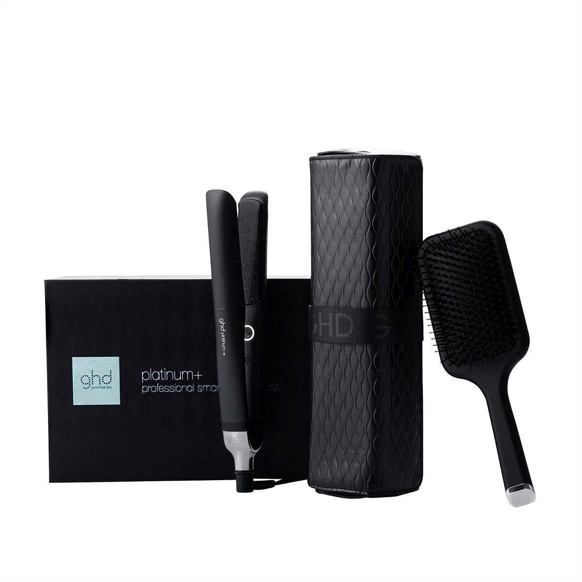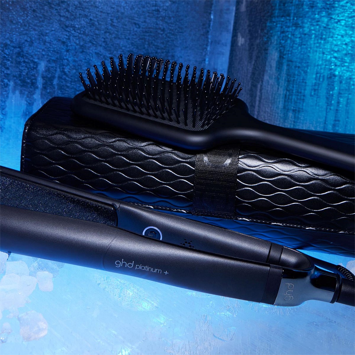ghd Platinum+ Hair Straightener now available in a Luxury Gift Set complete with Paddle Hairbrush and Heat-Resistant Styler Bag worth $520 AUD.