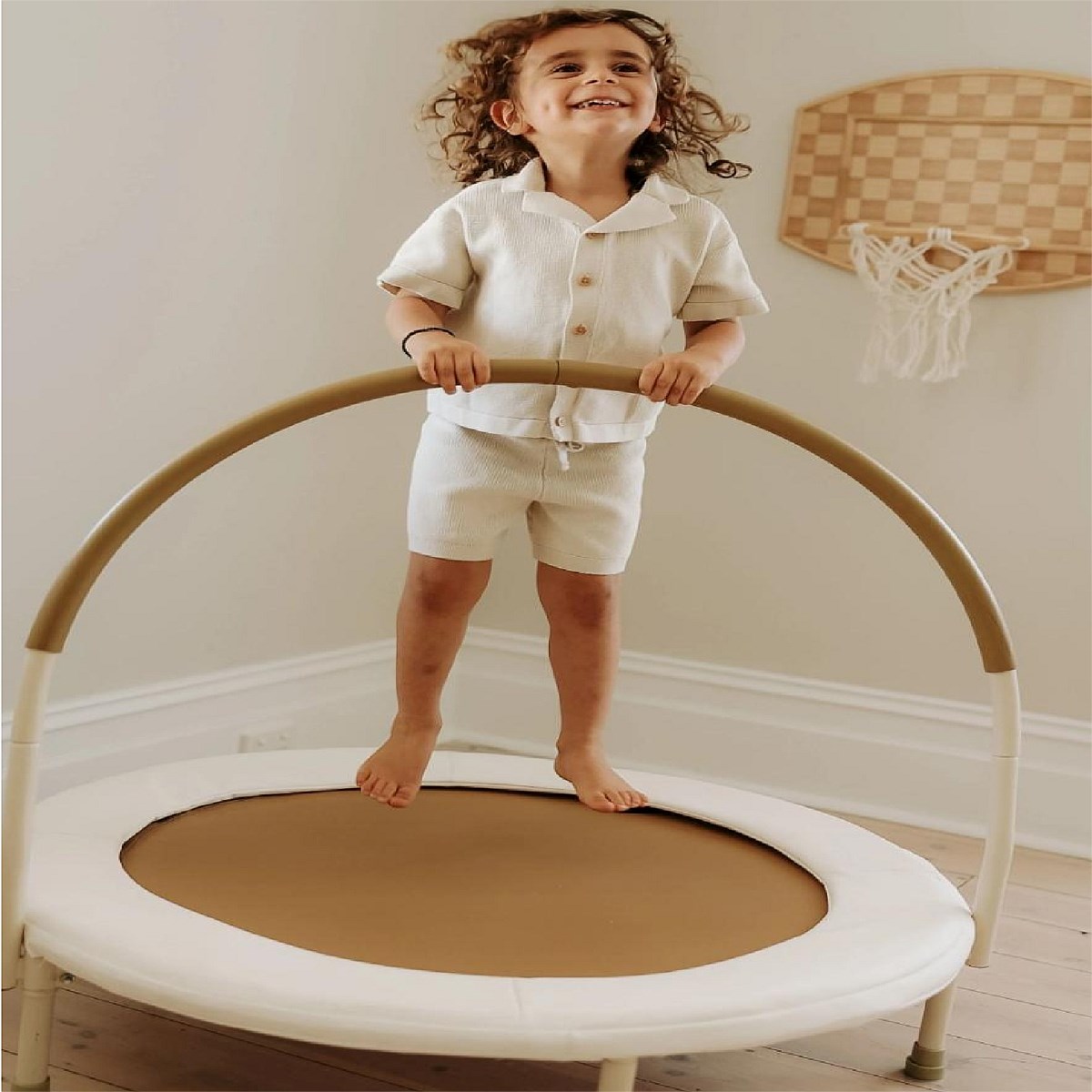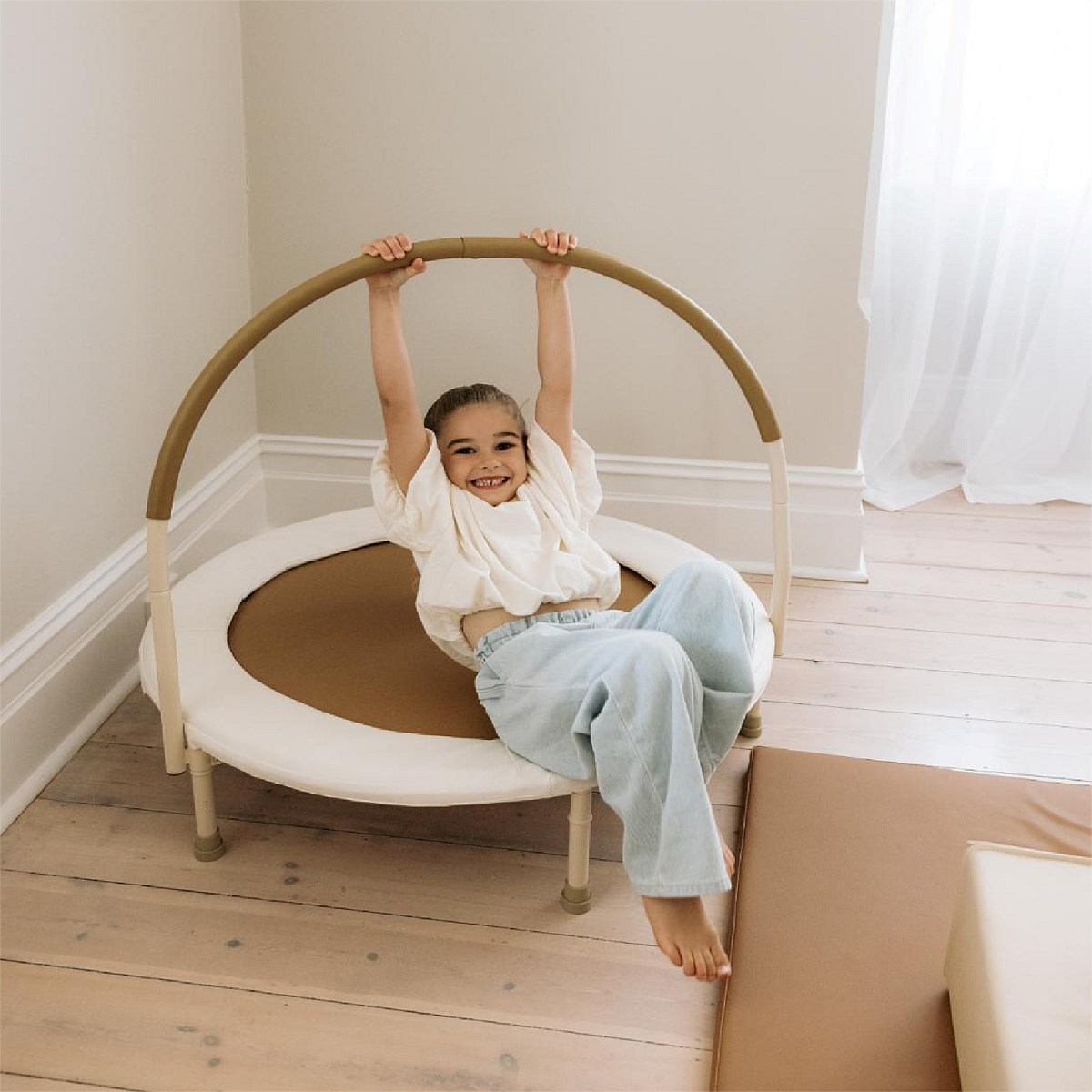 Active indoor play with style! The Poco Trampoline by Nuage Interiors comes in soft neutral tones to fit seamlessly with the decor of your home.