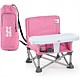 Compact design easily folds to 5 x 15 inches; Easy to clean with dishwasher safe tray and machine washable seat pad; includes a rear storage pocket for little essentials