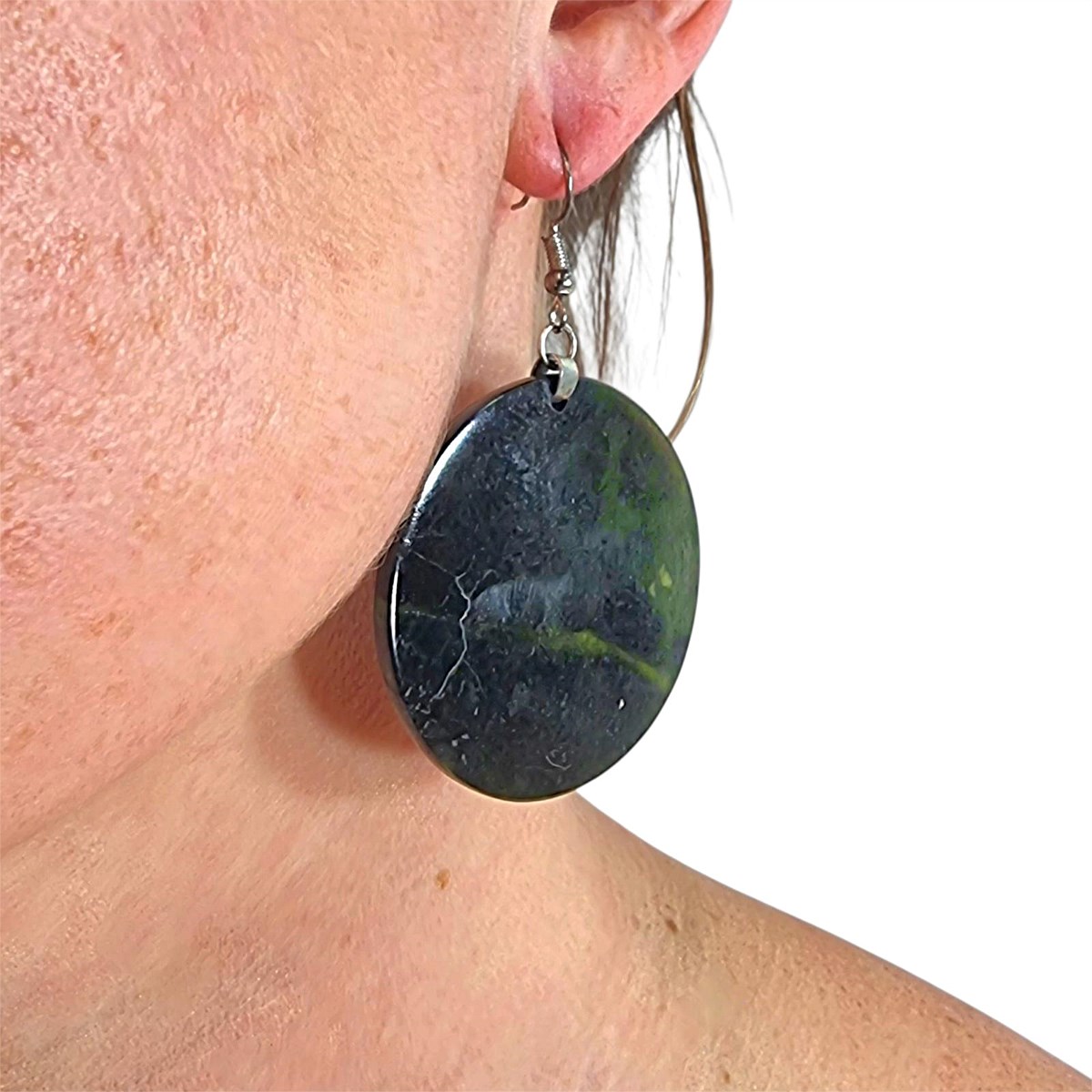 Over time the Pounamu will absorb its wearer's natural body oils, taking on qualities unique only to them. It will harness their energy & its colours & depth of detail will alter beautifully over time. The colours of these earrings will forever be a symbol of their