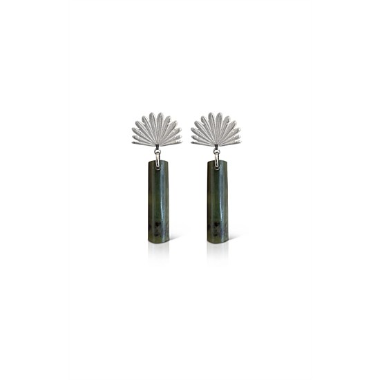 Pounamu Piwakawaka Drop Earrings Silver