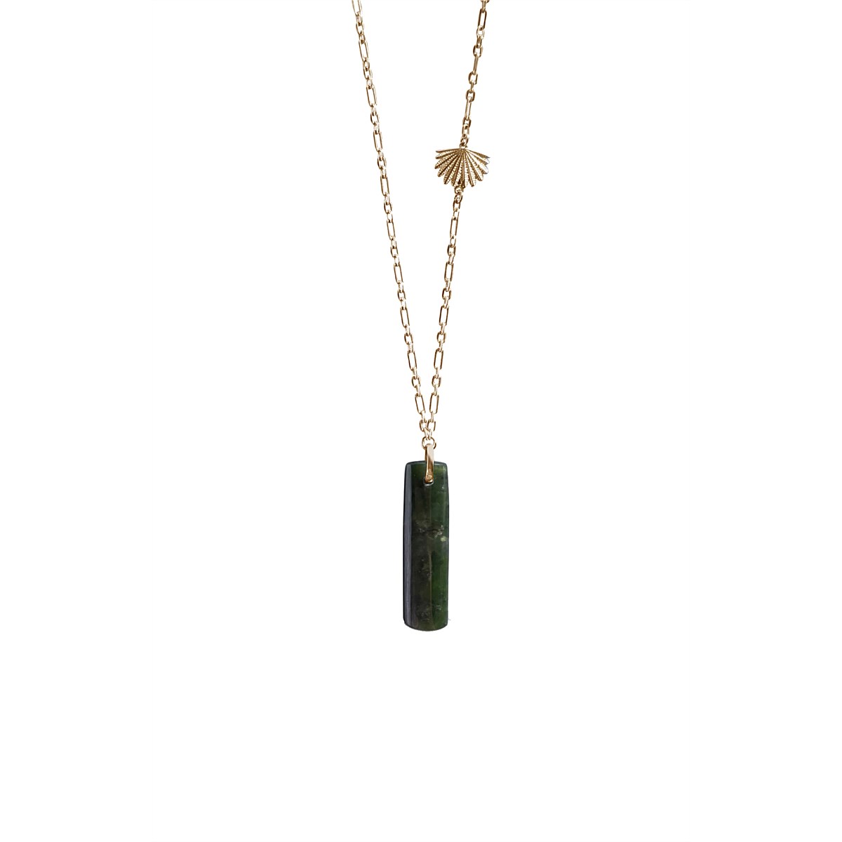 A slim, drop of pounamu adorned with our hero design the pīwakawaka fan tail featured on the chain will become a new classic in your jewellery wardrobe.