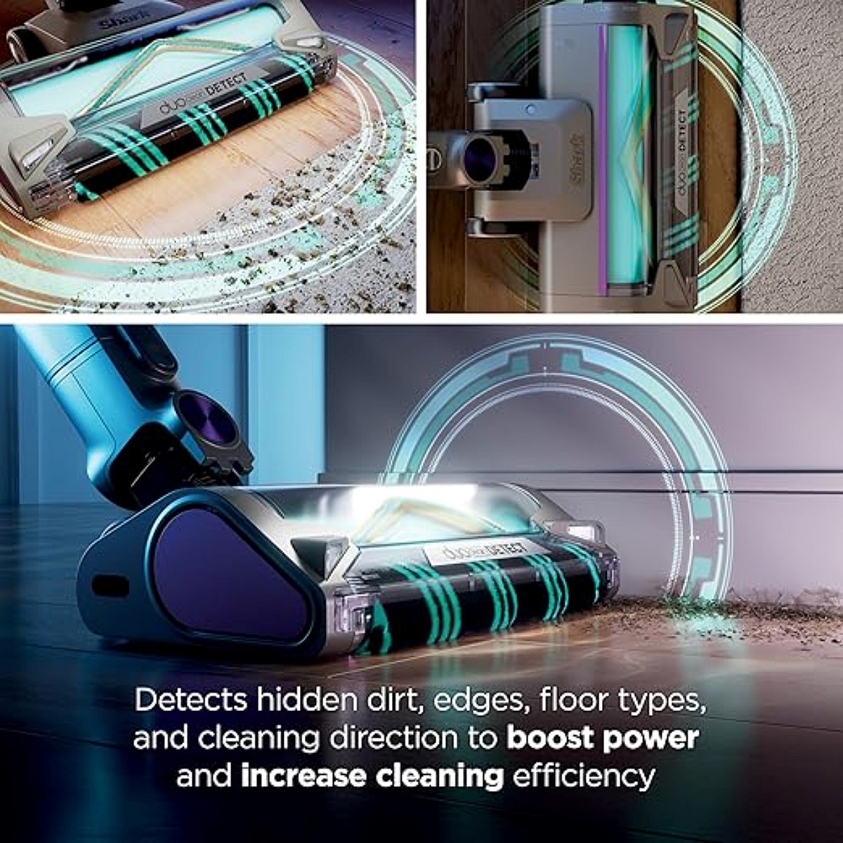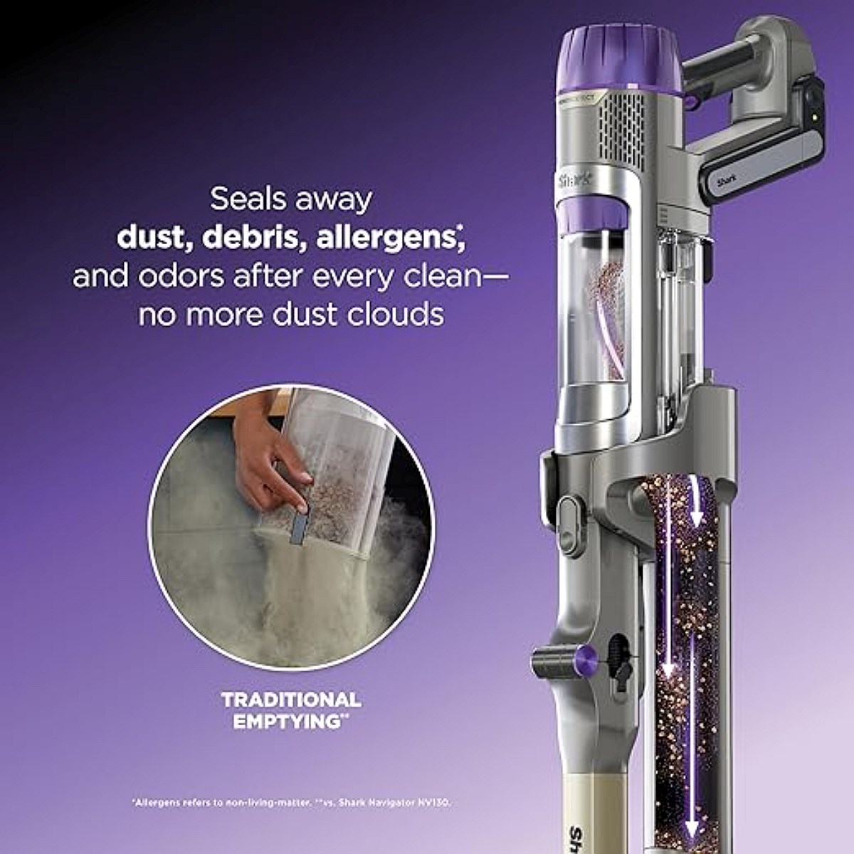 The Shark PowerDetect Clean & Empty system is the ultimate cordless solution for powerful, intelligent, whole-home deep cleaning. It features an Auto-Empty dock that charges and empties your vacuum after every clean, reducing dust exposure by 1000x vs. traditional emptying. PowerDetect delivers Shark’s DuoClean Detect with dirt-detecting intelligence and multi-directional cleaning. While most vacuums push around debris with every back stroke, the redesigned DuoClean Detect nozzle eliminates this problem by capturing more dirt, dust, and debris in both forward and reverse. PowerDetect offers an impressive 70 minutes of runtime and a MultiFLEX wand for effortless under-furniture reach and flex storage, while Odour Neutraliser Technology guards against bad odours inside your vacuum to help freshen your home. Put it all together, and you’ve got the Shark PowerDetect Clean & Empty system, the powerful and intelligent cleaning solution for your home.