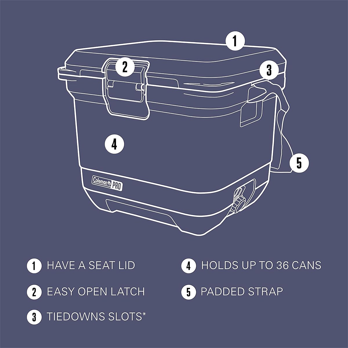 Meet the Coleman Pro series, designed for those who expect more. This 25-quart hard cooler stays cold for up to 3 days thanks to a fully insulated lid and body featuring extra thick walls up to 2 inches wide.