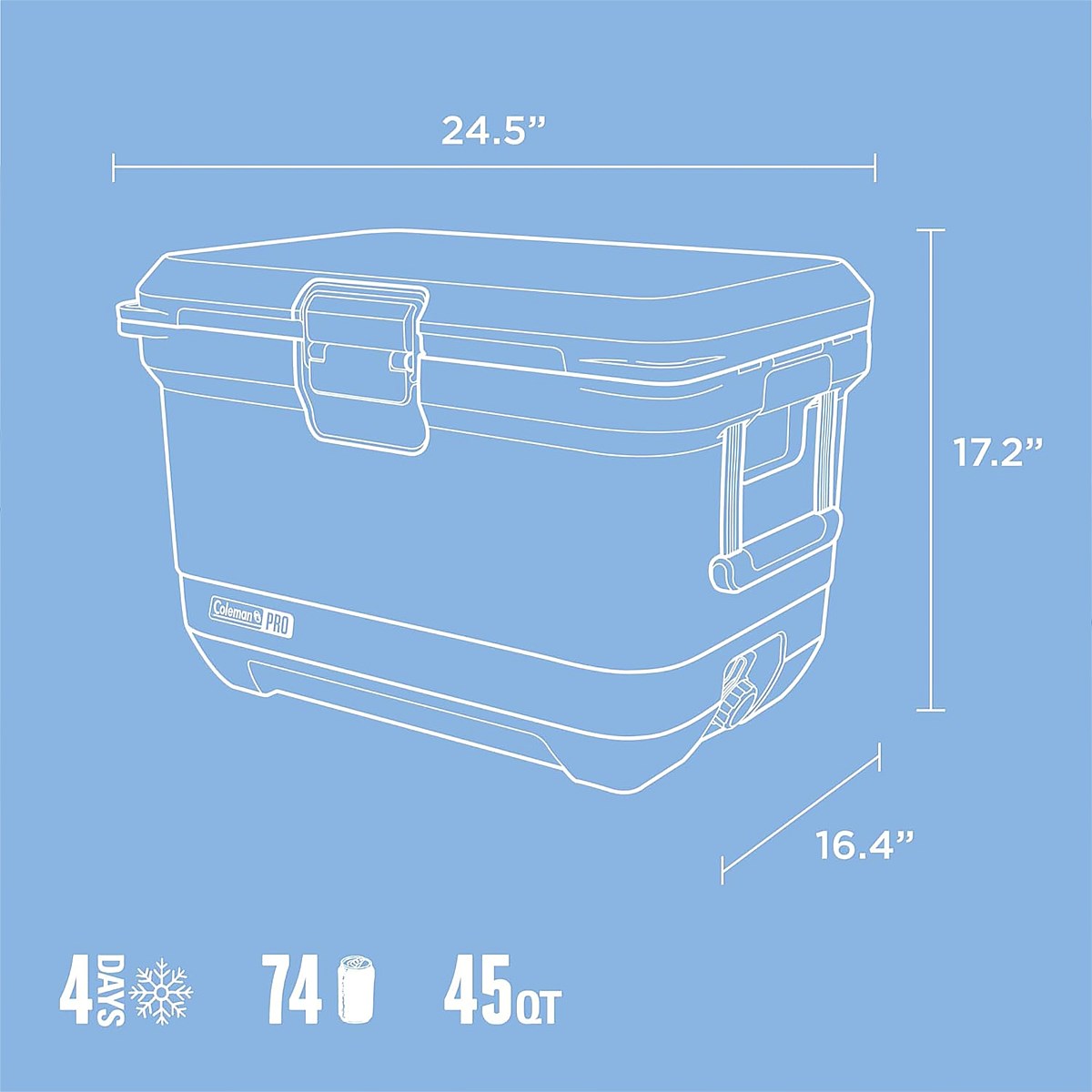 - 30% LIGHTER THAN ROTOMOLDED COOLERS: The Coleman Pro 45QT is designed to be 30% lighter than rotomolded coolers of the same capacity so you can get outside easier.