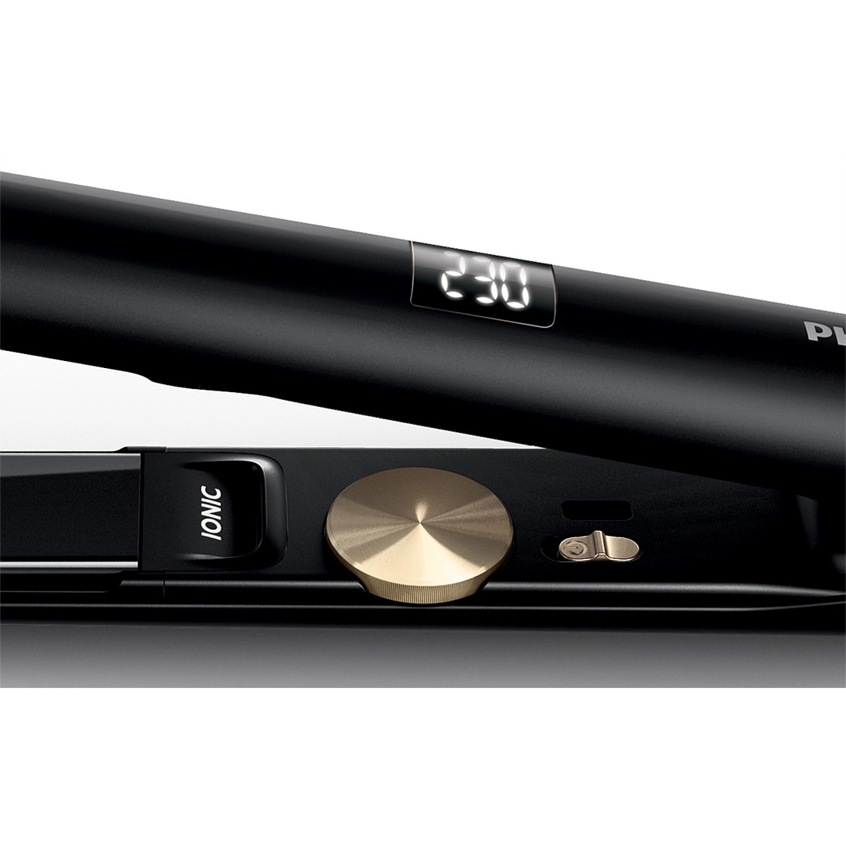 The Philips Pro hair straightener offers the best a straightener needs; Titanium floating plates with best heat conduction for fast straightening with optimal pressure.