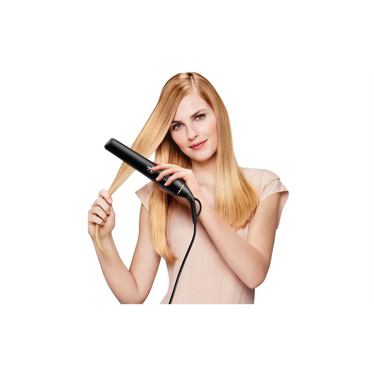 • Floating straightening plates move, when too much pressure is applied during straightening. This protects the hair shaft from being damaged and therefore avoids overall hair breakage.
