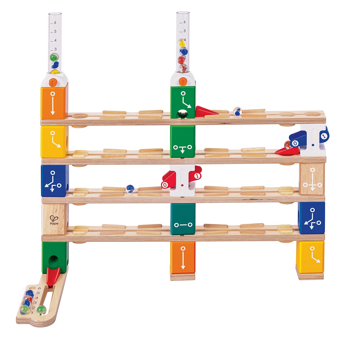 Learn the basics of coding with this fun Quadrilla marble run tower set! Build the towers and tracks and find the missing blocks to unlock the code! The challenges are endless with this off-screen coding marble run!