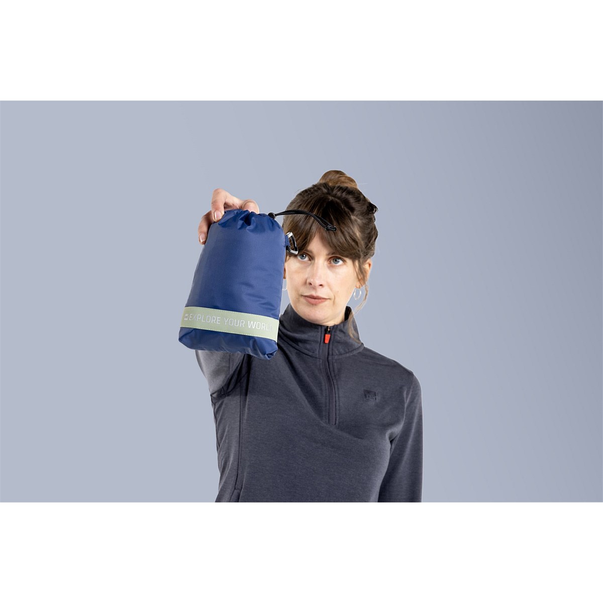 - Integrated storage: built-in zipped pocket doubles as stash bag with carabiner for easy carrying.