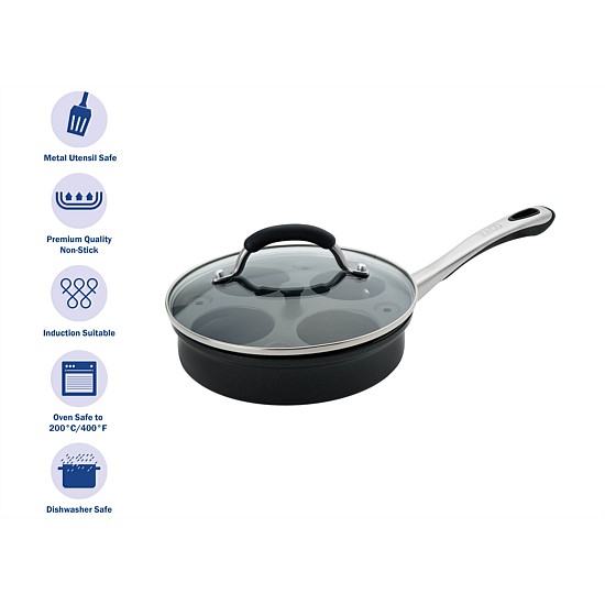 Make perfect café style poached eggs every time with this 20cm, 4 cup non-stick egg poacher.