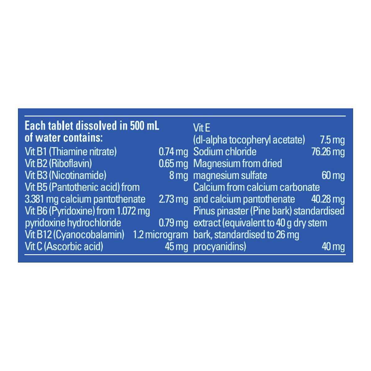 Directions: Dissolve 1 tablet in 500mL of water and enjoy.