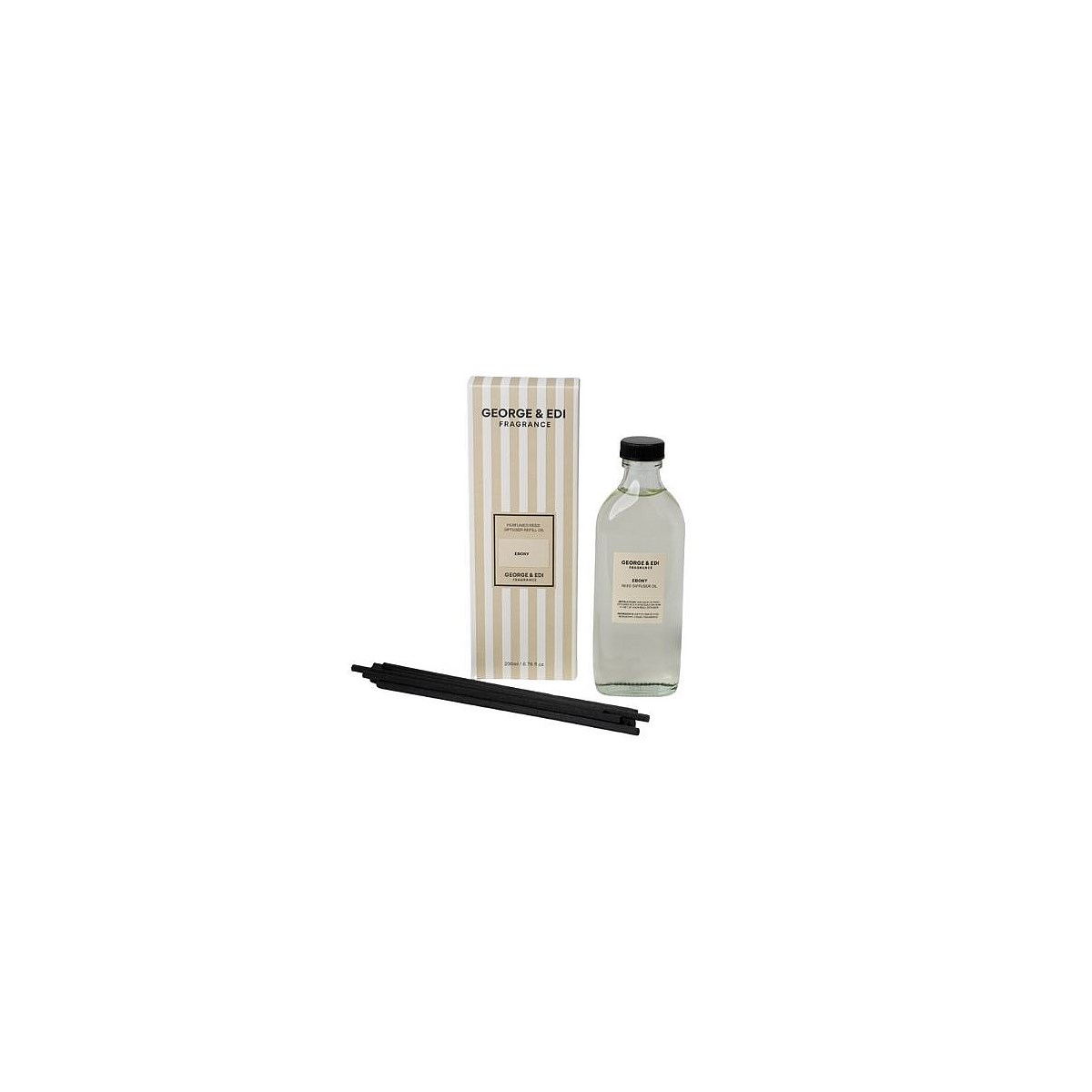 GEORGE & EDI reed diffuser fragrance refill oils are designed so you can reuse the vessel you received when purchasing the reed diffuser set. The 200ml refill oil comes with two new sets of black reeds (10), as the reeds will deteriorate over time and not work as efficiently, so we recommend changing them with each refill.