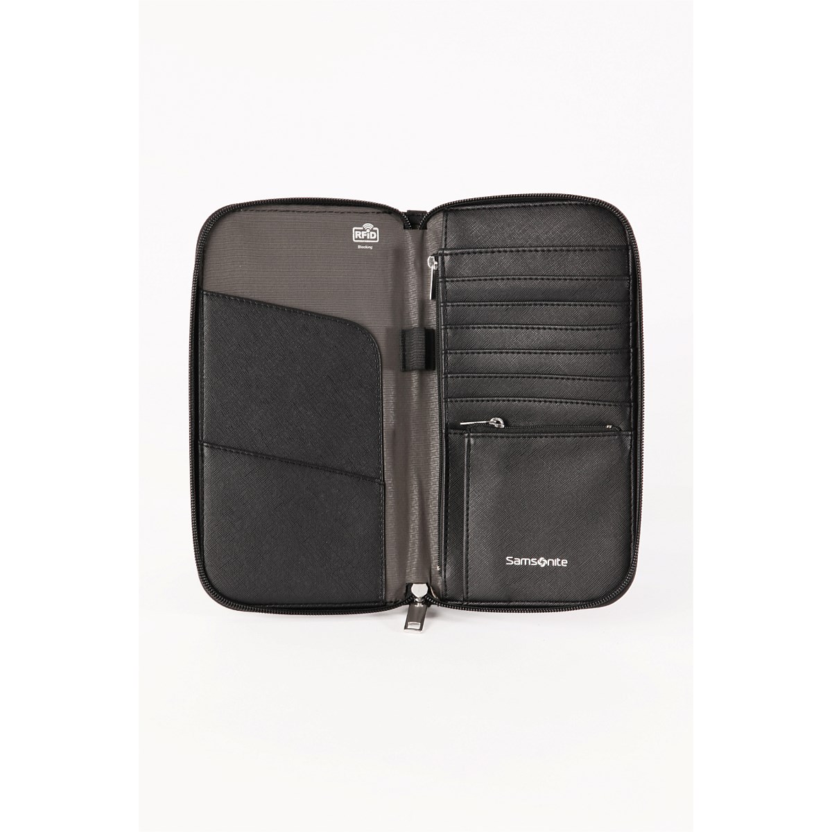 Keep all your travel Essentials organised with Samsonite’s RFID blocking Passport wallet in PU material.