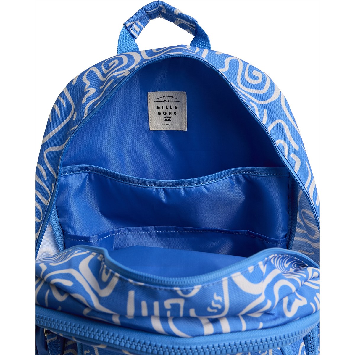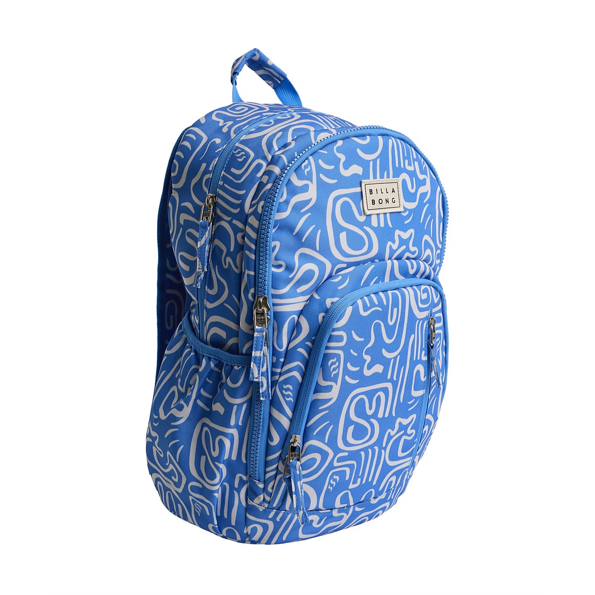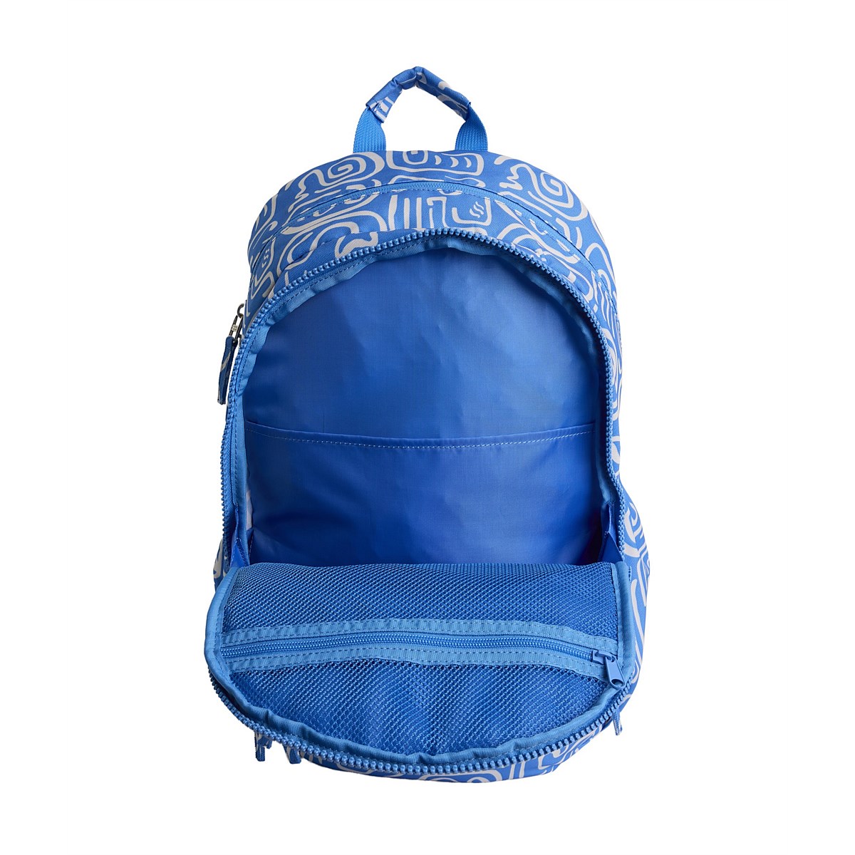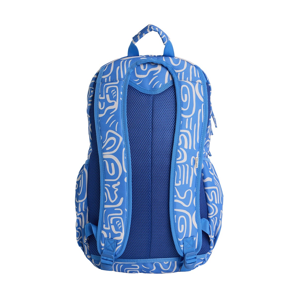 Backpack with Mesh back panel, interior laptop sleeve, elasticated side water bottle pockets, interior pencil slots, zippered mesh pockets, molded and nylon mix exterior zippers and padded adjustable shoulder straps.