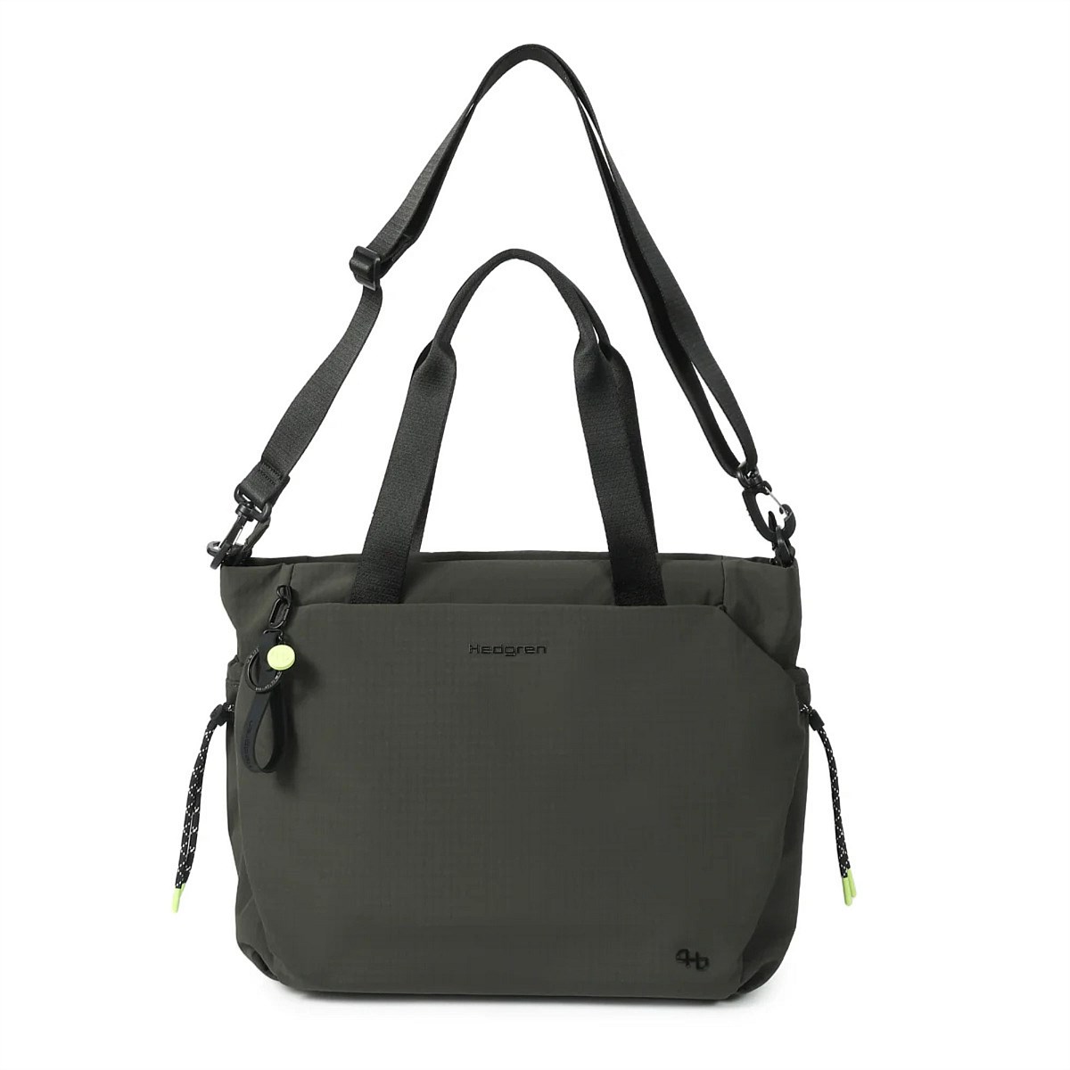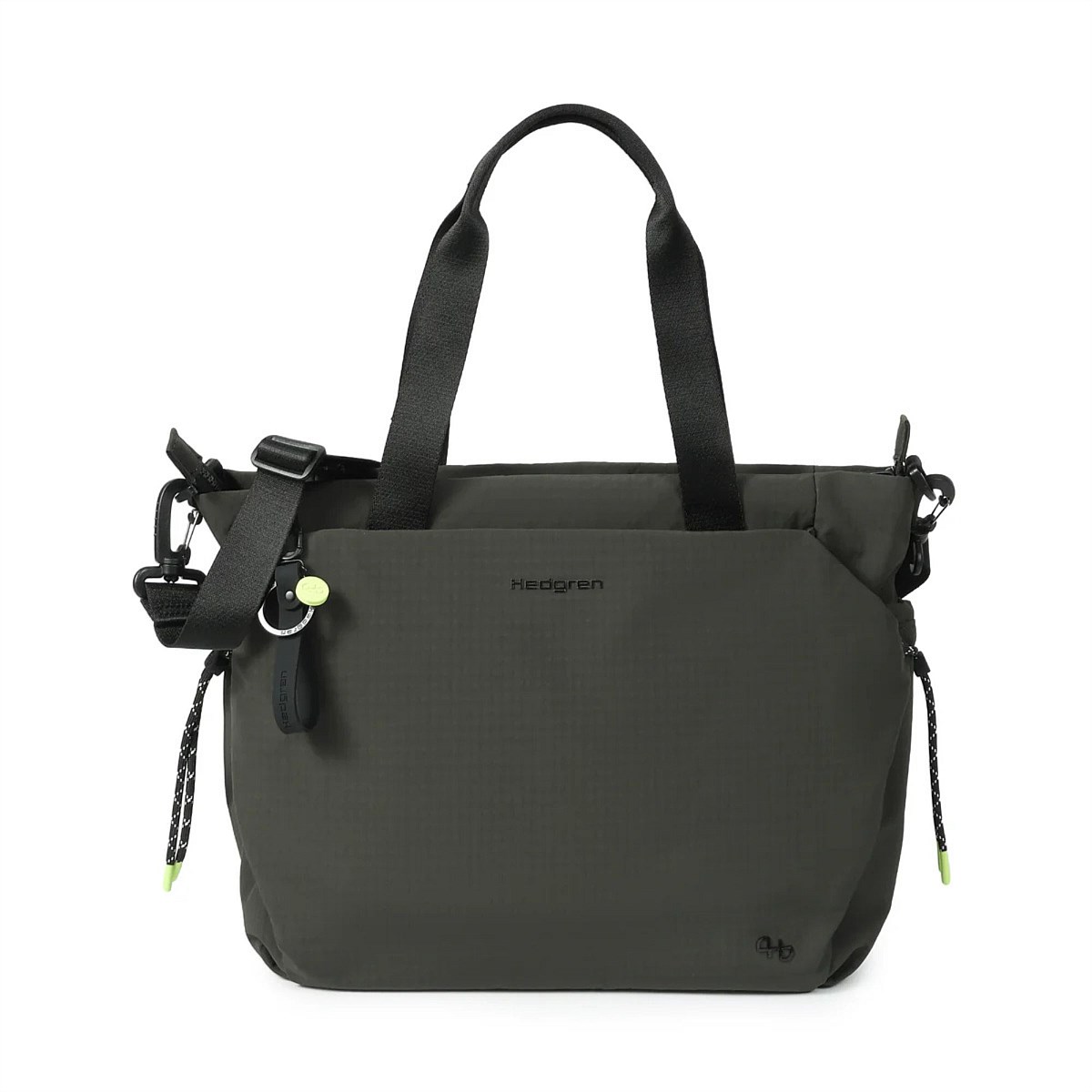Satoshi might look like your average tote bag, with stylish colour blocking and colour contrasting details, but it is anything but ordinary! Like all the bags in the String Collection, it has an adjustability function, allowing you to get even more of your essentials in the bag – perfect for travelling. Other great travel features include the smart sleeve that hooks over your suitcase handle and integrated safety pocket for your passport and boarding pass. It also has lockable zippers, so you know everything inside is safe from intruders. Even at its smallest capacity, Satoshi is still impressive. The long carry handles and detachable shoulder strap give you carry options, while the 14” laptop sleeve means you can work on the go. There’s space for your A4 files, phone, water bottle, umbrella and even a key fob. And the partially recycled exterior material used to make the bag is soft and water-repellent. Rubber details and metal hardware finish this bag off in the perfect Hedgren style.