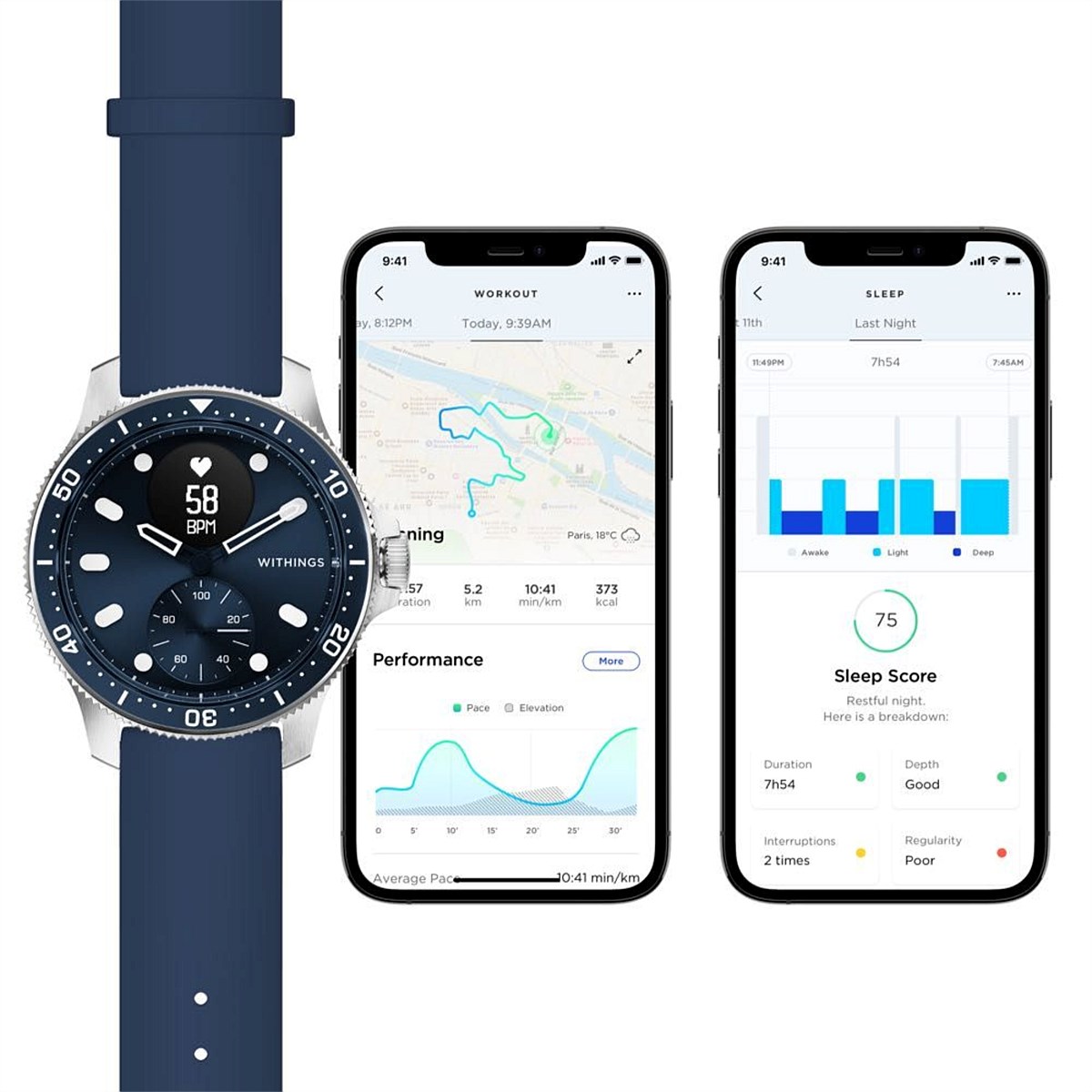 - Medical Data In Hand - ScanWatch seamlessly syncs with the free Withings app via Bluetooth and provides valuable data that can be used daily or during a doctor's visit. Works with Apple Health, Google Fit, Strava and 100+ top health & fitness apps.